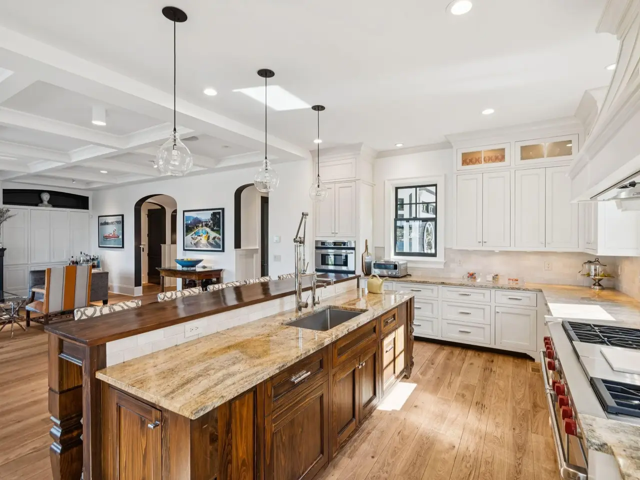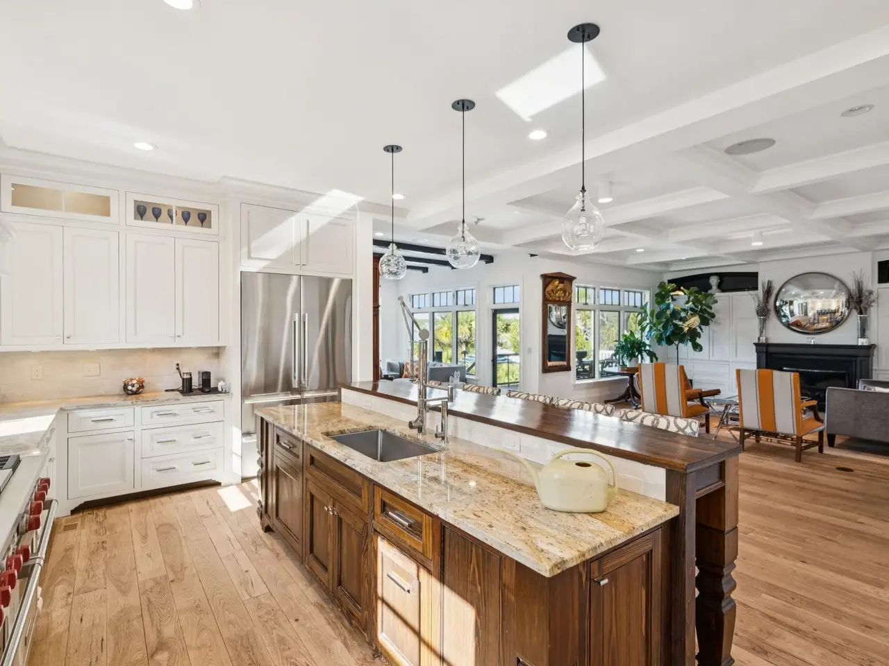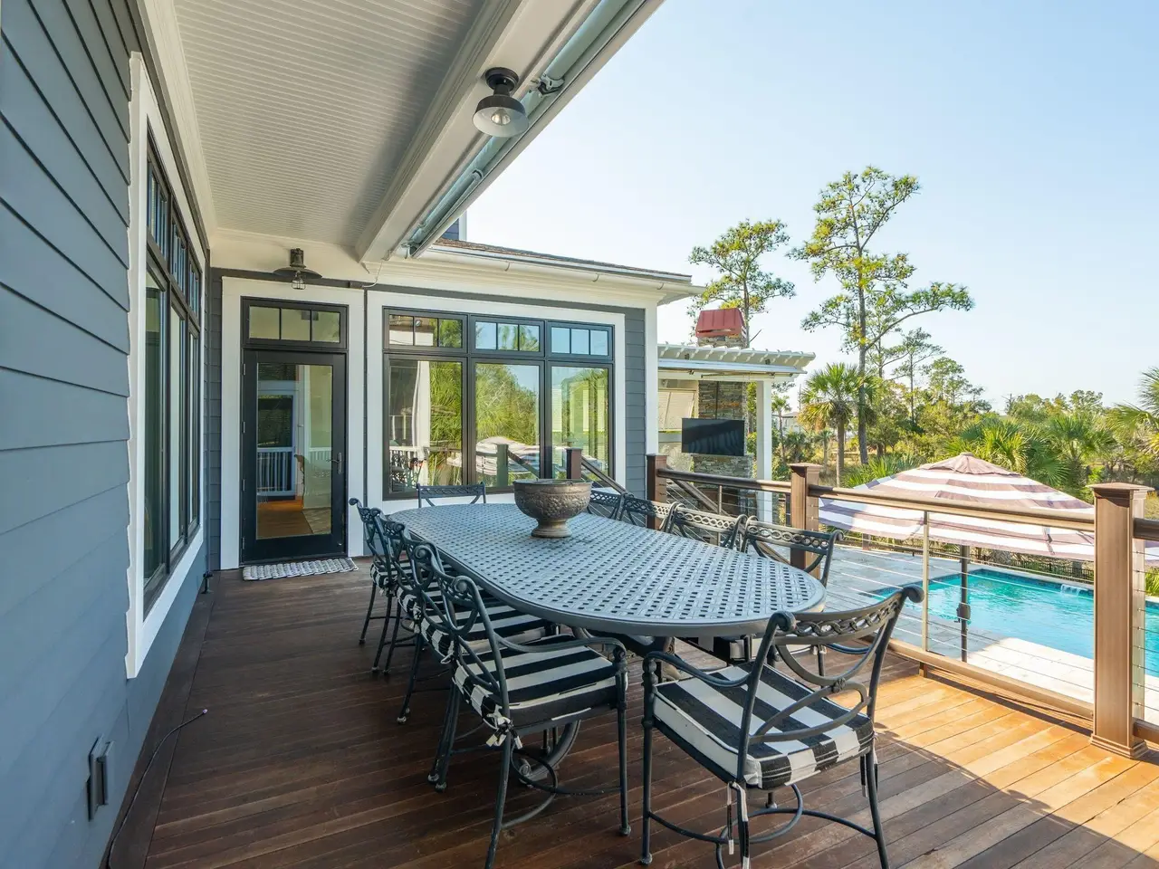 Experience the very best of Charleston waterfront living in this one-of-a-kind private estate. Nestled on a 1.55-acre lot along the Wando River within exclusive Dunes West, this breath-taking custom-built home blends modern elegance with the timeless charm of the Lowcountry. The property features a deep-water covered dock with a 10,000lb boat lift with a ''walk around'' platform, plus a large floater. Upon entering the home, you are immediately greeted by panoramic views of the Wando River. The interior features rich matte finished hickory floors and expansive windows that fil the space with natural light, creating a warm and inviting atmosphere.The gourmet kitchen is designed for both comfort and entertaining, showcasing a large center island, stainless steel appliances, a new 48-inch LG refrigerator, wine cooler, a Wolf gas range with double ovens, and an elegant wine bar - perfect for hosting gatherings or enjoying quiet evenings at home. The primary suite is located on the main level and features a gas fireplace and more breathtaking river views. The spa-inspired ensuite bathroom is complete with an oversized walk-in shower that opens to the dressing room. Recently updated, this impressive space includes a custom organizational system, designer lighting, and the convenience of in-suite laundry. Upstairs, you'll find three spacious bedrooms, each with its own private full bath and a second laundry room. From this level, a spiral staircase leads to a hidden loft-style retreat - a charming and versatile space ideal for reading, relaxation, or simply enjoying the views of the Wando River. The basement level features a media/game room with surround sound, a full bathroom, a custom mudroom, workshop, gym and climate-controlled storage. 3 car garage and an elevator to the above floors complete this level. Just off the main living room, step outside to your backyard oasis, where luxury and leisure meet. The expansive two-level terrace showcases a stunning heated saltwater pool surrounded by travertine tile, an outdoor kitchen with cooktop and gas grill for dining al fresco. A charming lit walkway leads directly to your private dock, completing this extraordinary waterfront retreat.