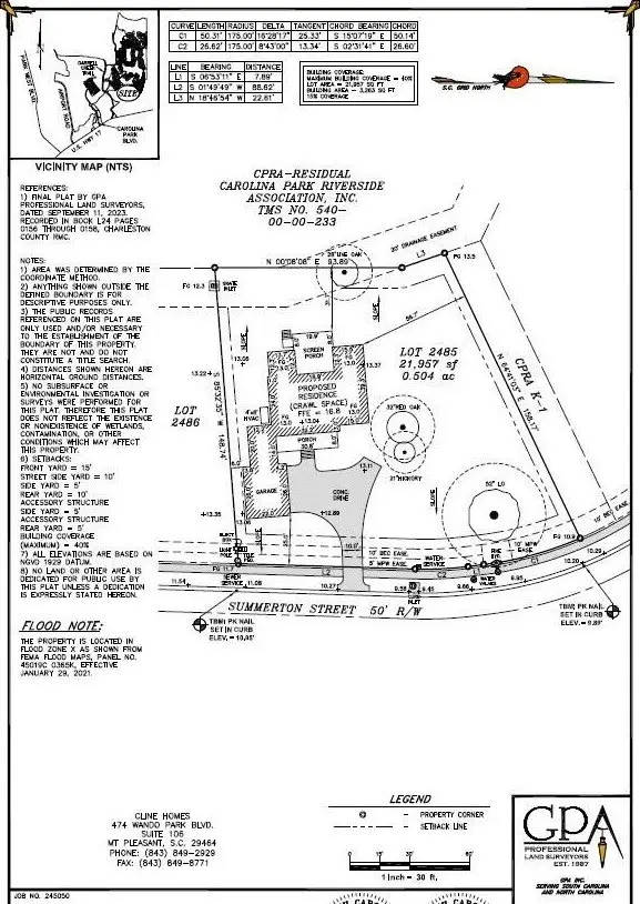 INTRODUCING THE PRESERVE - RIVERSIDE'S VERY LAST CUSTOM HOME PHASE. The most exclusive new construction offering to date in Riverside at Carolina Park. Over the last dozen-plus years, Riverside has shaped itself into a mature custom homes community where beauty and community come together in Mt. Pleasant, SC. The Preserve Lots are a collection of only 13 larger home sites. TWO CUSTOM HOMES REMAIN! Estimated Completion later February 2026, Pool possible however not included in the price.This custom courtyard style new construction home features 3622SF, 5 bedrooms, and 4.5 baths on a large .5 acre home site. The 2 car garage is attached courtyard style with finished room above. This lot is in an X Flood Zone. This one-of-a-kind classically styled Custom Courtyard plan sits beautifully on a large .5 acre home site backing to a private, natural area. First floor features an open family room, kitchen, and breakfast room space, large laundry room mud room connection to attached garage, a luxurious owner's suite with a vaulted, beamed ceiling, a gas fireplace with custom mantle, built-in shelving in family room, a huge walk-in pantry, a stunning custom crafted family room beamed ceiling, a powder room, and a rear vaulted expanded screened in rear porch. This home will meet the most discerning buyer's expectations with custom interior wood trim appointments, stainless steel kitchen appliances, cabinets with soft close drawers, and a large custom built center island. Upstairs the luxury continues with a large light and bright hardwood landing, three additional generous bedrooms plus two custom crafted full baths. The special appointments are too much to mention - please see the agents for design book details. PHOTOS ARE SHOWN FOR EXAMPLE PURPOSES AND DO NOT REPRESENT THIS EXACT HOME. OPTIONAL FINISHES ARE SHOWN AS EXAMPLES OF QUALITY WORK OF PREVIOUSLY BUILT SIMILAR HOMES by this builder. Design Book Available by Request.