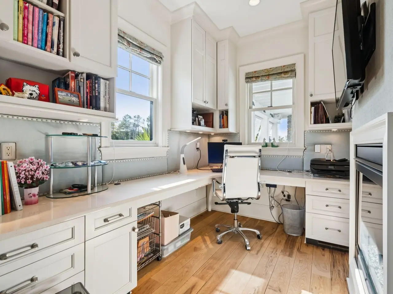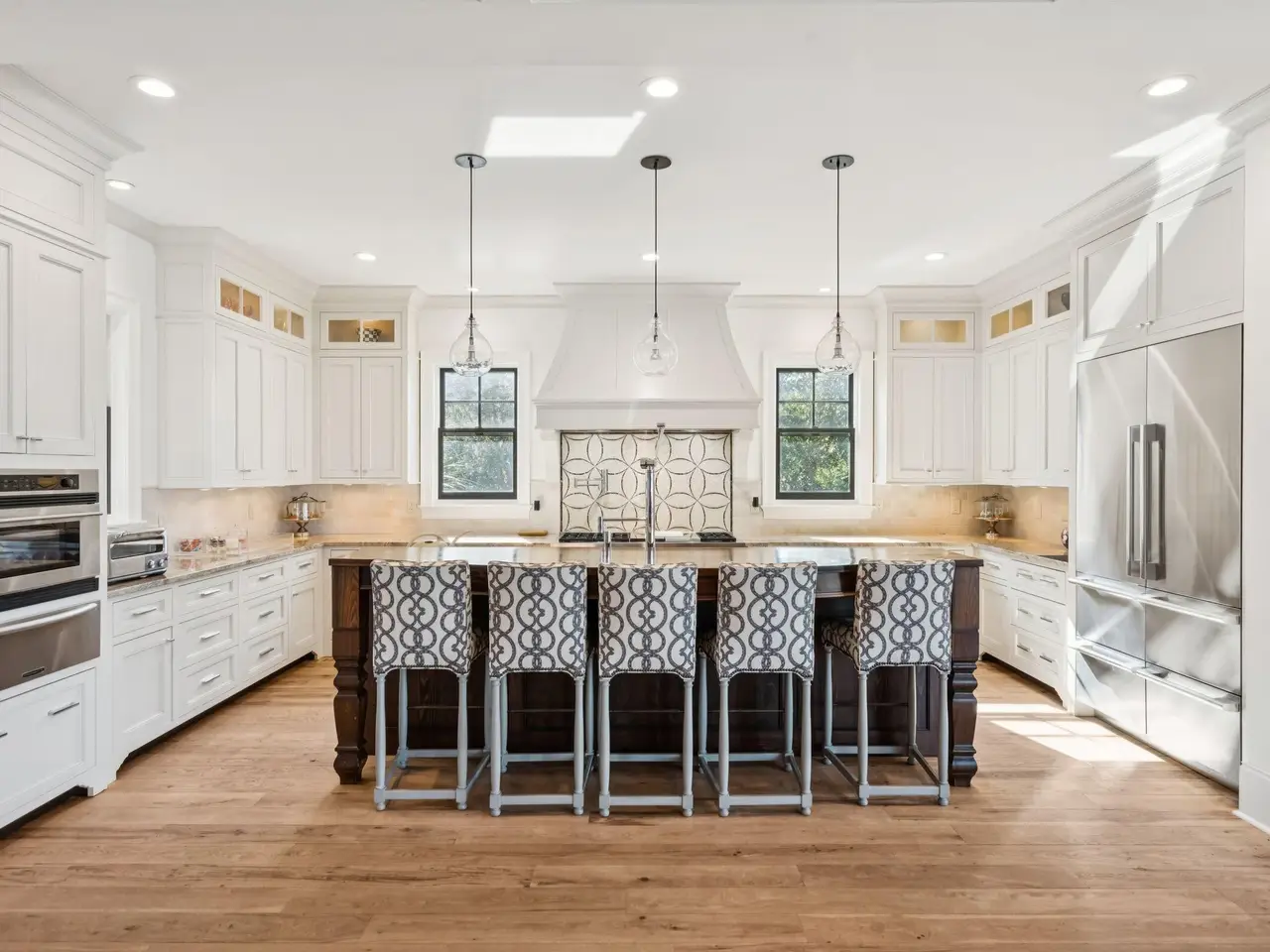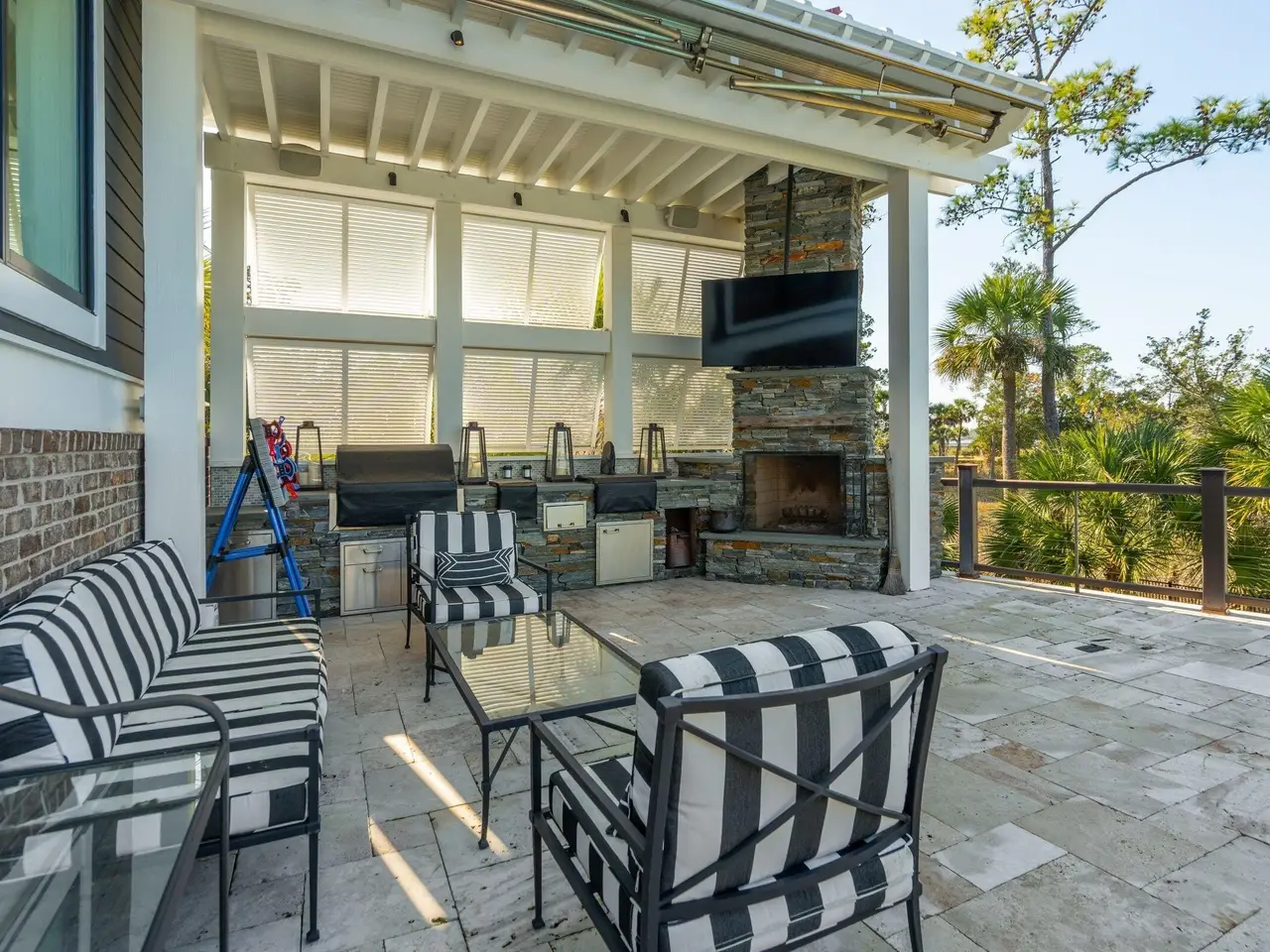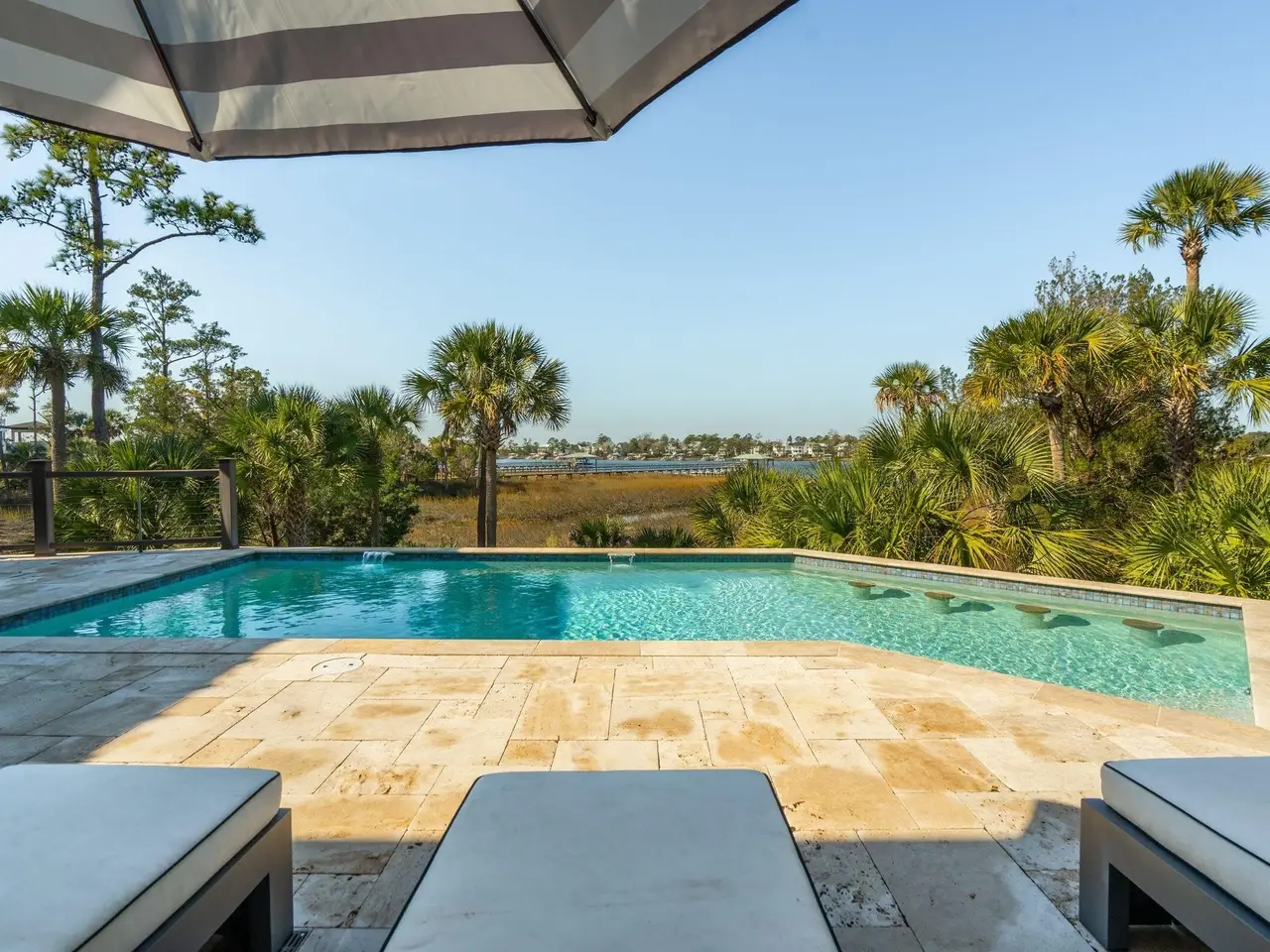 Experience the very best of Charleston waterfront living in this one-of-a-kind private estate. Nestled on a 1.55-acre lot along the Wando River within exclusive Dunes West, this breath-taking custom-built home blends modern elegance with the timeless charm of the Lowcountry. The property features a deep-water covered dock with a 10,000lb boat lift with a ''walk around'' platform, plus a large floater. Upon entering the home, you are immediately greeted by panoramic views of the Wando River. The interior features rich matte finished hickory floors and expansive windows that fil the space with natural light, creating a warm and inviting atmosphere.The gourmet kitchen is designed for both comfort and entertaining, showcasing a large center island, stainless steel appliances, a new 48-inch LG refrigerator, wine cooler, a Wolf gas range with double ovens, and an elegant wine bar - perfect for hosting gatherings or enjoying quiet evenings at home. The primary suite is located on the main level and features a gas fireplace and more breathtaking river views. The spa-inspired ensuite bathroom is complete with an oversized walk-in shower that opens to the dressing room. Recently updated, this impressive space includes a custom organizational system, designer lighting, and the convenience of in-suite laundry. Upstairs, you'll find three spacious bedrooms, each with its own private full bath and a second laundry room. From this level, a spiral staircase leads to a hidden loft-style retreat - a charming and versatile space ideal for reading, relaxation, or simply enjoying the views of the Wando River. The basement level features a media/game room with surround sound, a full bathroom, a custom mudroom, workshop, gym and climate-controlled storage. 3 car garage and an elevator to the above floors complete this level. Just off the main living room, step outside to your backyard oasis, where luxury and leisure meet. The expansive two-level terrace showcases a stunning heated saltwater pool surrounded by travertine tile, an outdoor kitchen with cooktop and gas grill for dining al fresco. A charming lit walkway leads directly to your private dock, completing this extraordinary waterfront retreat.