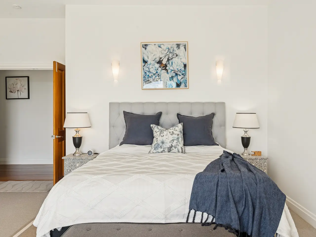 Master suite with marble-finished ensuite & garden views