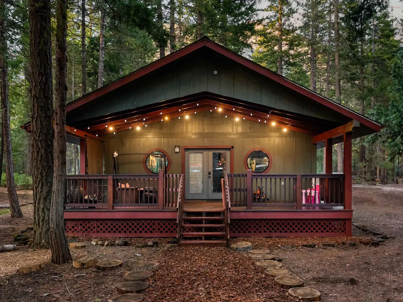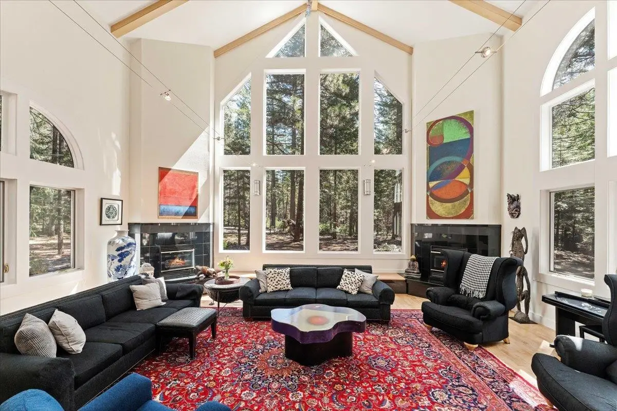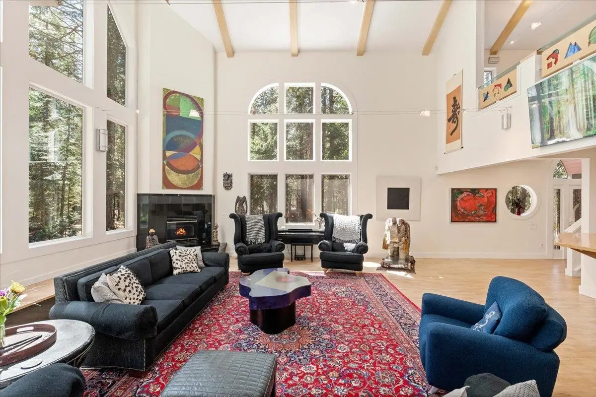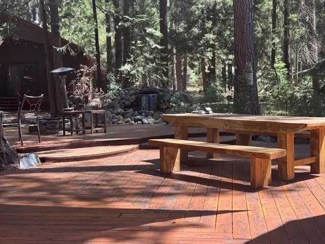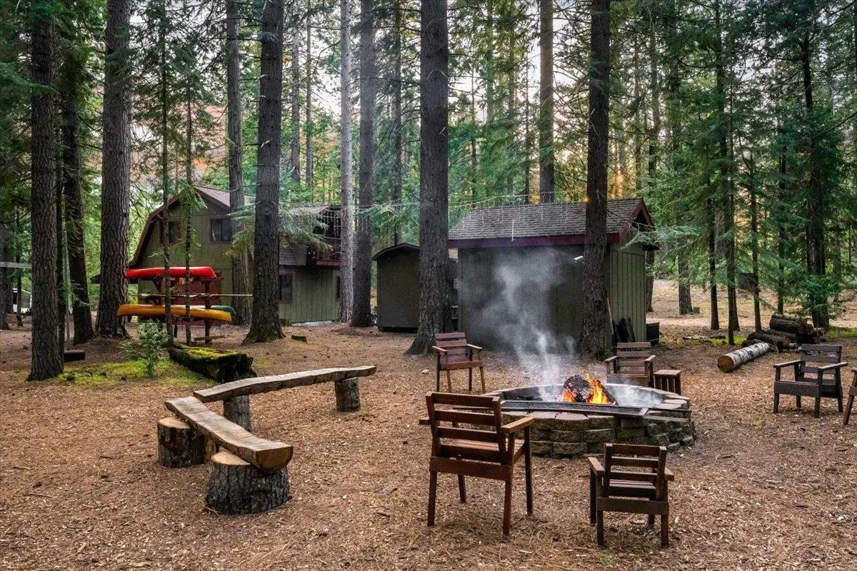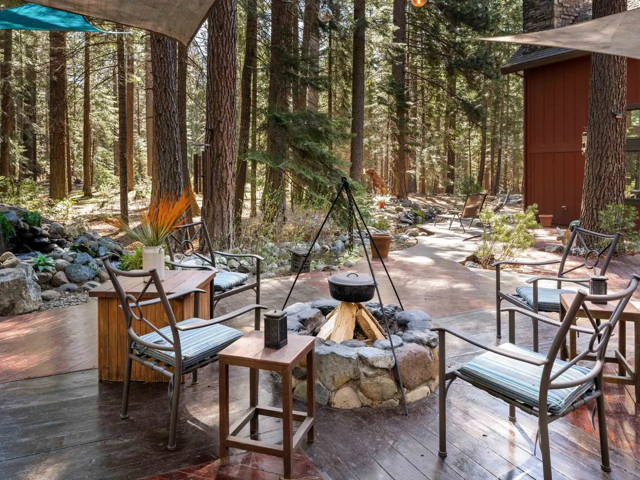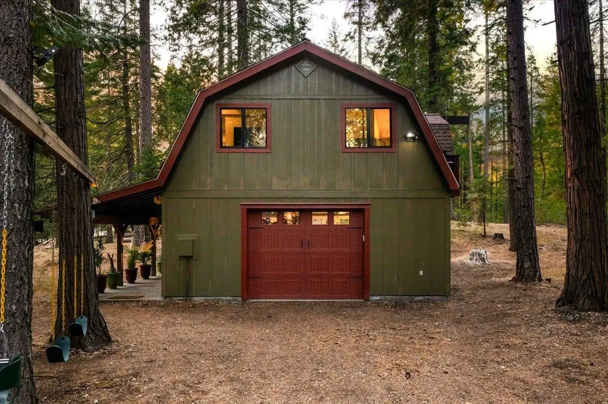 This multi-unit property is a beautiful venue for a private retreat in the woods or hosting large gatherings. Stepping on to the property releases peace in the nature infused luxury. The 2996 sqft primary home present a unique mix of gallery and cozy home; 28 ft beamed ceilings, 4 bedrooms (one duals as an art studio), 3 baths, 3 door garage, library, and a complete workshop. A massive redwood deck calls for gatherings with a fire pit, waterfall pond, farm table and an outdoor sound system. The nearby cabin - complete with kitchen, bathroom and laundry is a flexible space that can be a mother-in-law unit or a bunk house for housing many guests. Above a drive through barn you will find a theatre/office/ mancave with a full bath and kitchenette. There are numerous outbuildings providing ample storage space for winter sports and property gear. This delightful forest property is looking for its next generation of fun!