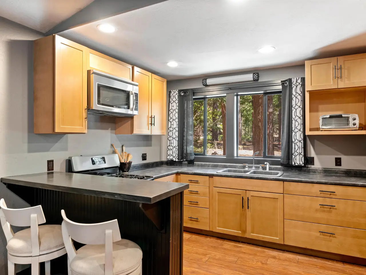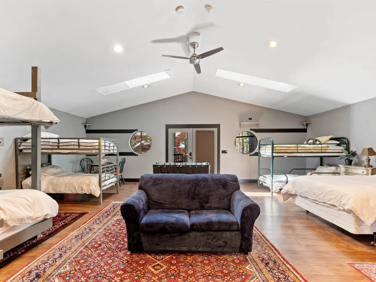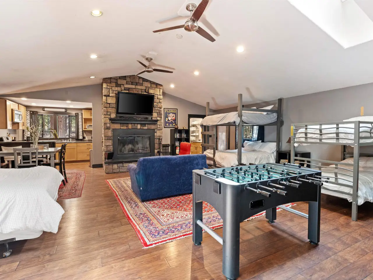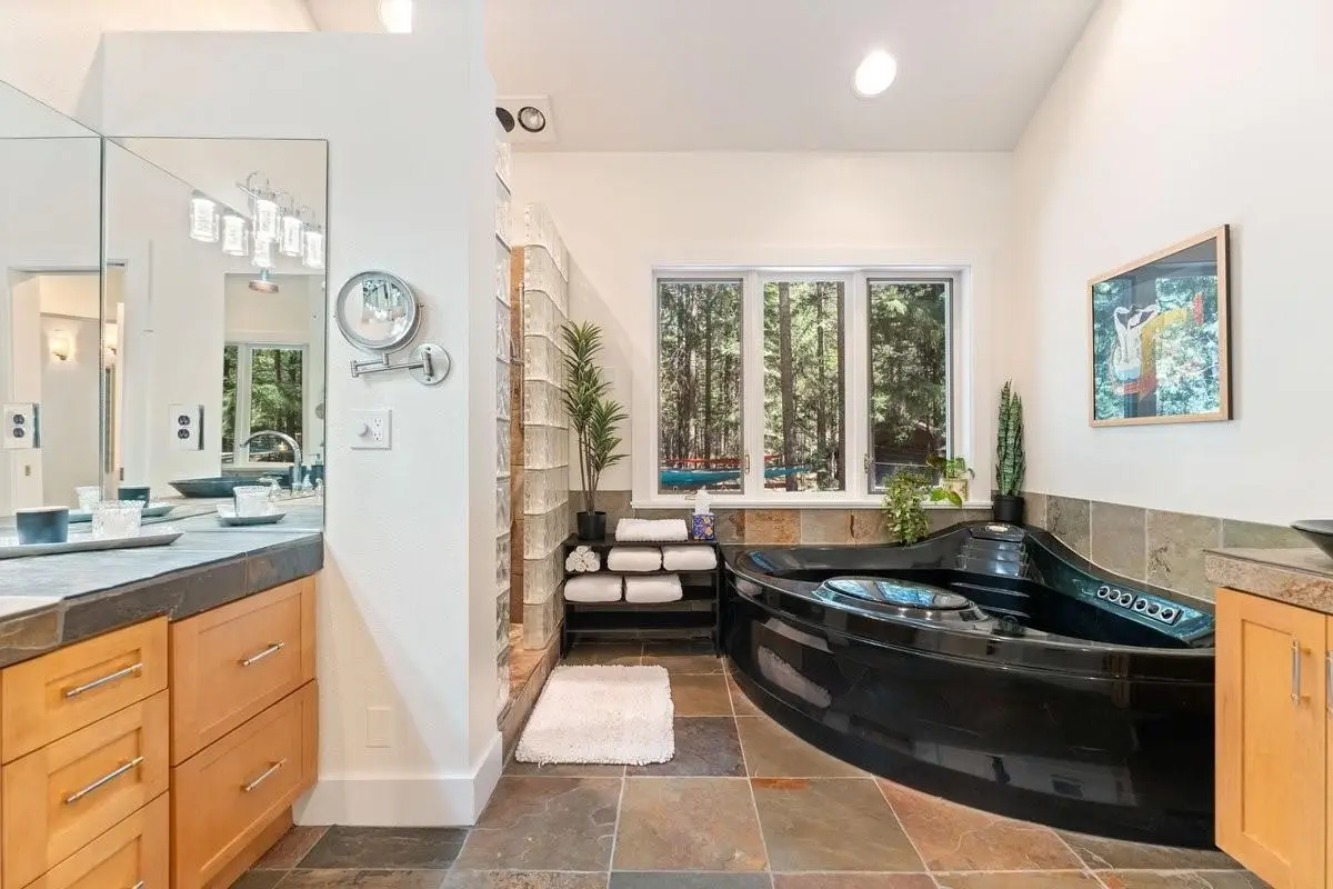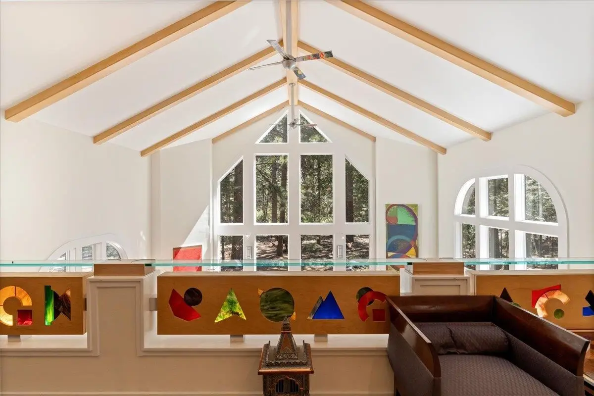 This multi-unit property is a beautiful venue for a private retreat in the woods or hosting large gatherings. Stepping on to the property releases peace in the nature infused luxury. The 2996 sqft primary home present a unique mix of gallery and cozy home; 28 ft beamed ceilings, 4 bedrooms (one duals as an art studio), 3 baths, 3 door garage, library, and a complete workshop. A massive redwood deck calls for gatherings with a fire pit, waterfall pond, farm table and an outdoor sound system. The nearby cabin - complete with kitchen, bathroom and laundry is a flexible space that can be a mother-in-law unit or a bunk house for housing many guests. Above a drive through barn you will find a theatre/office/ mancave with a full bath and kitchenette. There are numerous outbuildings providing ample storage space for winter sports and property gear. This delightful forest property is looking for its next generation of fun!