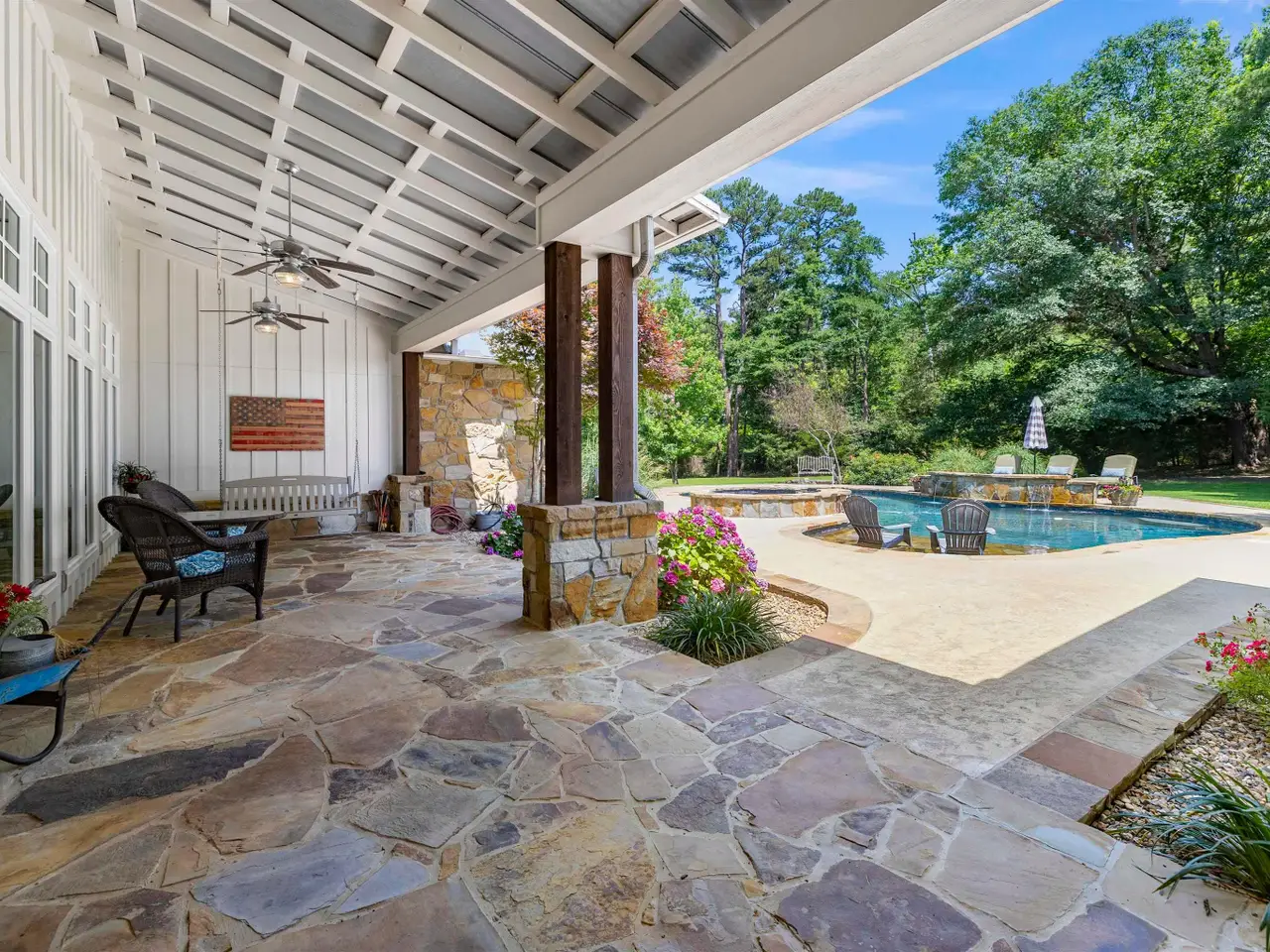 Expansive covered patio with outdoor kitchen