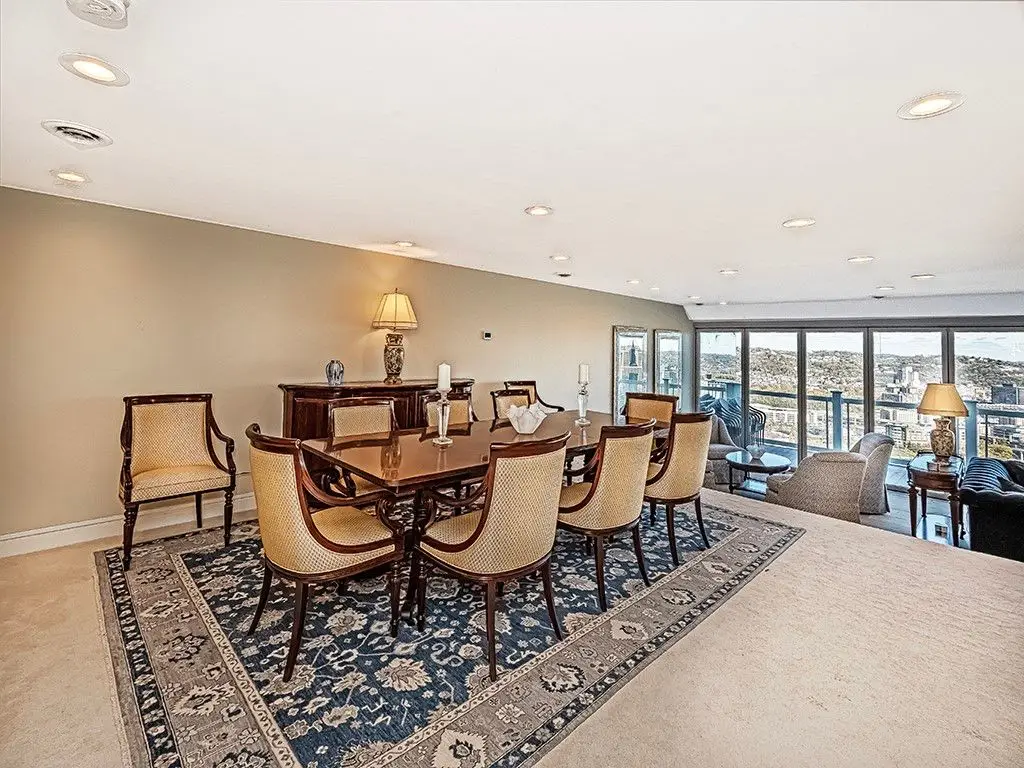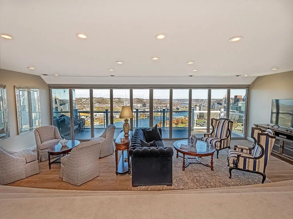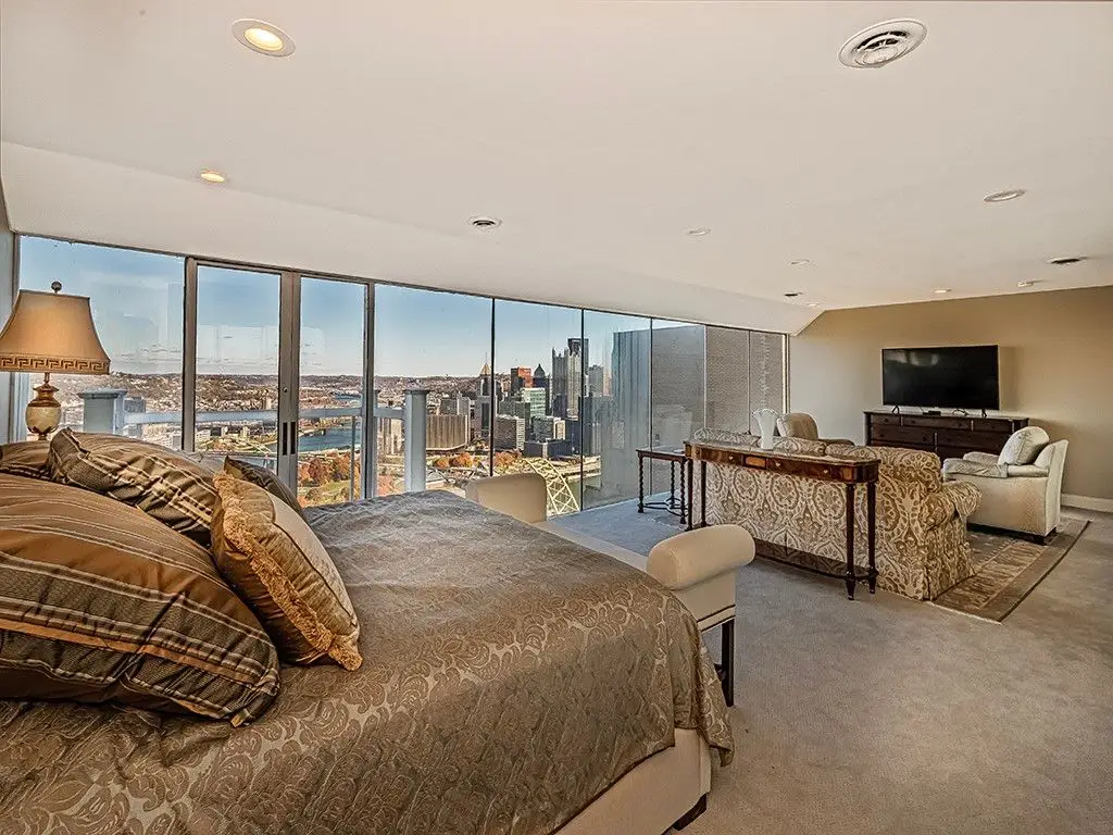 Experience luxury living in this stunning Mt. Washington condominium offering panoramic views of Pittsburgh's skyline, rivers, and stadiums. This spacious home features a sunken living room with floor-to-ceiling windows and balcony access, perfect for soaking in the cityscape. The open dining area flows into a fully equipped, step-saver kitchen. With three generously sized bedrooms - including a captive room ideal for a home office - and a luxurious primary suite with spa-like ensuite and private balcony, comfort meets elegance throughout. Enjoy the convenience of second-level laundry and an oversized car garage. Located just steps from the Incline, restaurants, and entertainment, this home offers a rare blend of peace, style, and city access. Wake up every day to million-dollar views and vacation-like living. Don't miss your chance to own this exceptional property on Grandview Avenue!