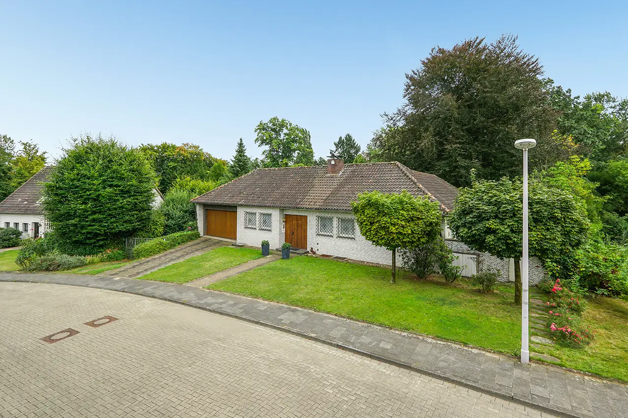 Spacious retreat with clinker charm, tranquillity and 3-metre room height - a house with potential and character With around 219 m² of living space spread over seven well-designed rooms and a plot of around 6,000 m², this detached family home from 1965 offers plenty of space for families or couples who value space, individuality and closeness to nature. Even at first glance, the building reveals its timeless clinker brick charm and the solid architectural style of the 1960s. The solid construction, a prestigious hipped roof and interior heights of up to three meters give the house a special spaciousness and an open feeling of space. Two bedrooms, two fully equipped bathrooms and additional, versatile rooms form the basis for comfortable living in a classic structure. The quiet, natural location is particularly noteworthy - a true oasis for anyone who values privacy and relaxation without wanting to forego good connections to the local infrastructure. Generous window areas allow plenty of daylight into the living spaces and emphasize the friendly ambience of the house. Electric exterior blinds throughout the house and a modern alarm system provide additional comfort and security. The house offers an ideal basis for individual modernization measures. Anyone who enjoys design and wants to implement their own ideas for living will find a solid foundation with plenty of potential here. The property is currently heated by an oil-fired central heating system, which reliably provides pleasant warmth. In addition to the living area, there are spacious ancillary areas and practical storage facilities. A double garage offers space for your vehicle and additional storage space. The spacious outdoor area opens up numerous possibilities: whether it's a garden landscape, play area for children, hobby gardening or even keeping animals - there are virtually no limits to your creativity here. The surrounding nature characterizes the feeling of living in this location, as does the pleasant tranquillity - ideal for people who want to combine retreat, open space and quality of life. At the same time, residents benefit from short distances to schools, shopping facilities and public transport connections, making the location particularly family-friendly. This house is far more than just a property - it is a place with character, history and a future. Discover the potential and be inspired by the special atmosphere. For further information or to arrange a viewing appointment, please do not hesitate to contact us.