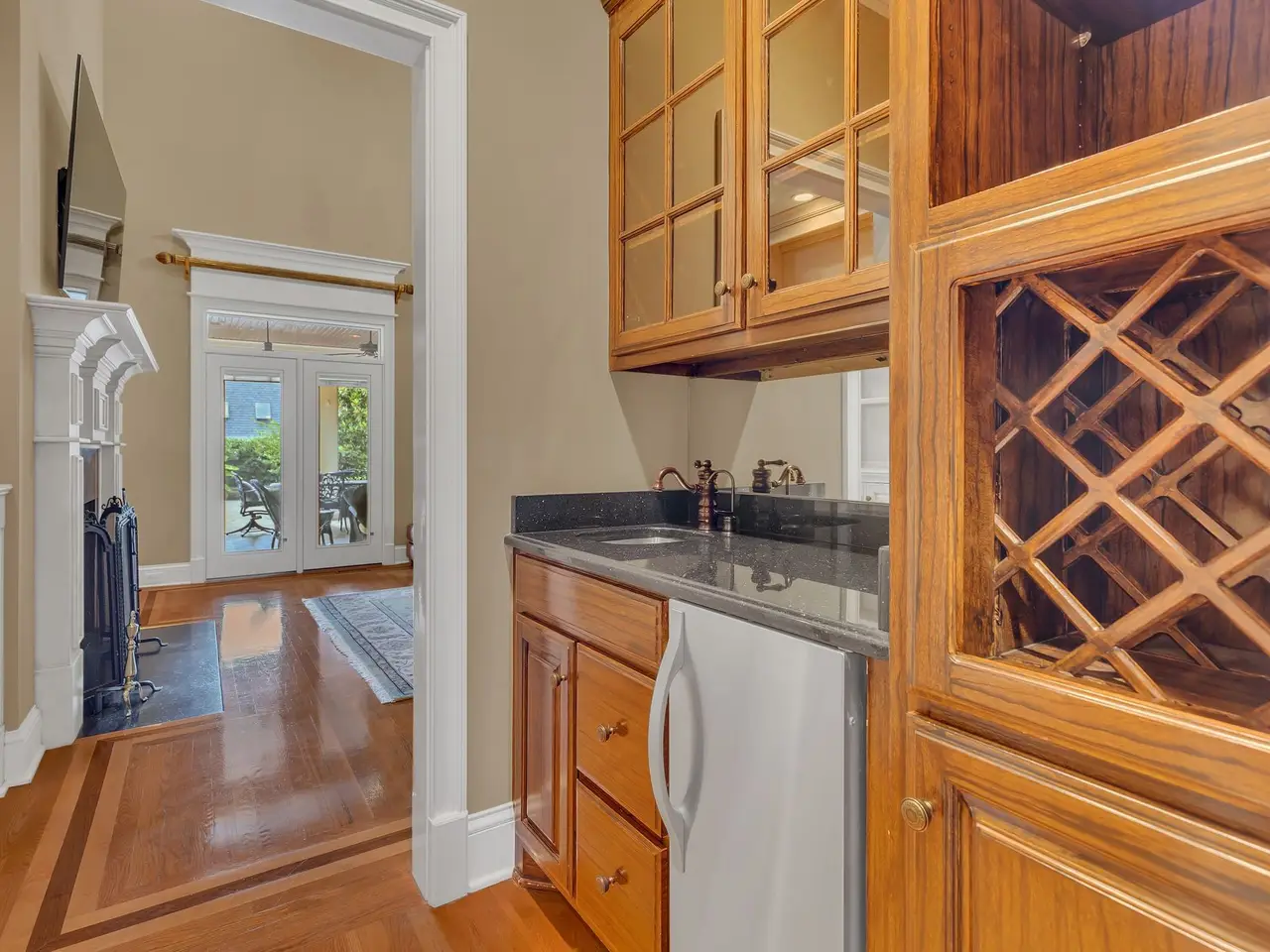 Stunning Custom Home in Sought-After Mirabella. This beautiful, custom-built residence blends luxury, privacy, and timeless design. Featuring energy-efficient geothermal HVAC and pristine hardwood floors throughout the main living areas, every detail has been thoughtfully curated. Enjoy total outdoor privacy with lush, mature landscaping that surrounds an entertainer, is dream: a covered porch with a full outdoor kitchen, fireplace, and a sparkling pool complete with waterfall, slide, and a convenient outdoor half bath. Inside, you'll find elegant plantation shutters, custom built-ins in the den, and a Sub-Zero refrigerator in the gourmet kitchen. Designer light fixtures add sophistication, while a light lift in the entry makes maintenance a breeze. Custom closets are featured throughout. Upstairs, enjoy a large bonus room with a pool table that remains, plus a versatile space perfect for a home office, hobby room, or studio. This home is truly one-of-a-kind. Luxurious, functional, and move-in ready.