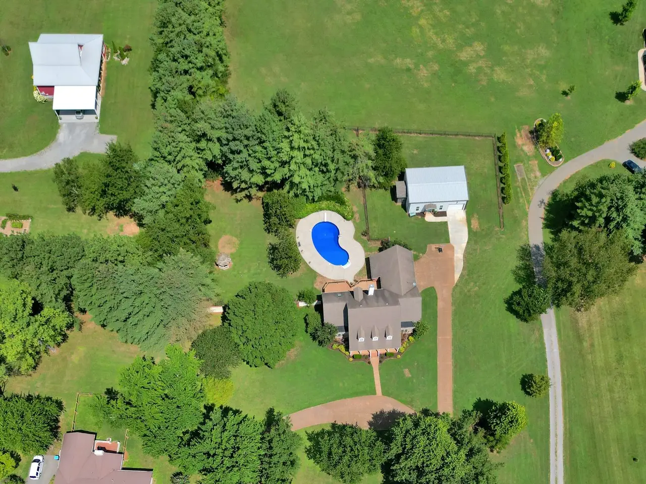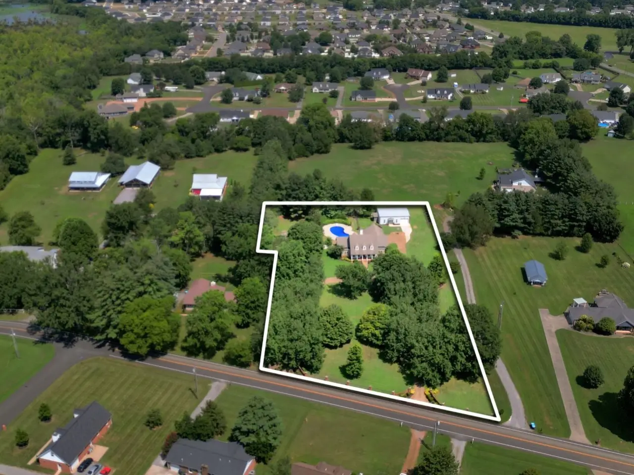 Welcome to 2329 & 2325 Irby Lane, a UNIQUE and HARD to find TWO home property! The renovated Main house has a primary suite downstairs and one upstairs, a real dining room and office or sitting room. 26 mature trees line the circular drive leading up to the Southern Living front porch! The 2 entrances are flanked with stately brick columns and wrought iron fencing all on 2.38 acres with a heated in-ground pool. Masonry and brick fence provide privacy for back yard. Huge TREX deck to enjoy . Primary suite down has new modern shower and large soaking tub and a closet that is big enough for furniture or your own design! Kitchen has white cabinets and new countertops and backsplash. Appliances 4 years old**Fresh paint**New plumbing and light fixtures, LVP flooring, too many renovations and improvements have been made in the last 4 years to mention here. 2 bedrooms up and a finished storage/craft room in addition to the 4th bedroom up with Private bath and sitting room that can be a second primary suite. ***Now, the 4 year old second home is an 860 ft barndominium with 1 bdrm, walk-in shower, great room, dining area, screened in porch and oversized garage perfect for a rental, or family needs. NO HOA! MINOR RENOVATIONS STILL IN PROGRESS ON MAIN HOUSE** Call agent for more details on this one of a kind find in the heart of Murfreesboro!! NOTE*black chain fence to the right of 2nd home and back property line belong to owner on back property. Home originally permitted for 3 bdrms, seller has new permit for 2nd home.Seller will need a 2 hour notice on 2nd home as it is occupied temporarily ( family with new baby). Buyer or buyers agent to verify information important to them such as taxes, etc. Agent is related to seller.