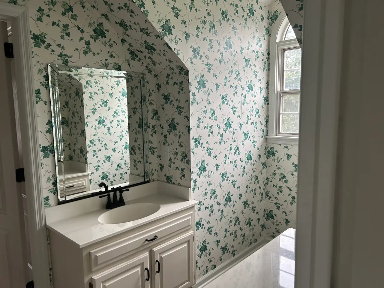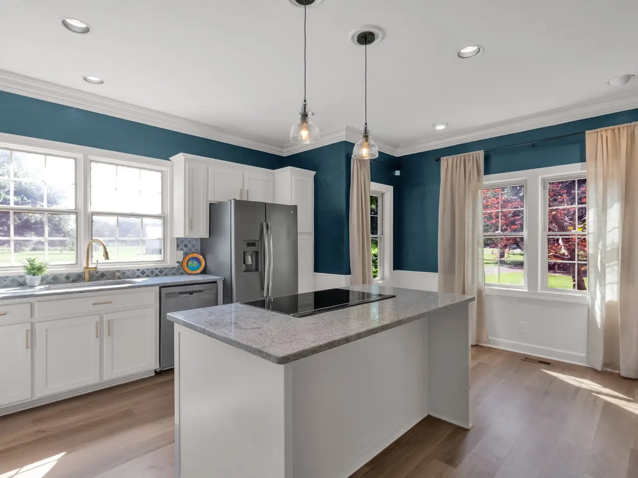 Renovated kitchen with white cabinets