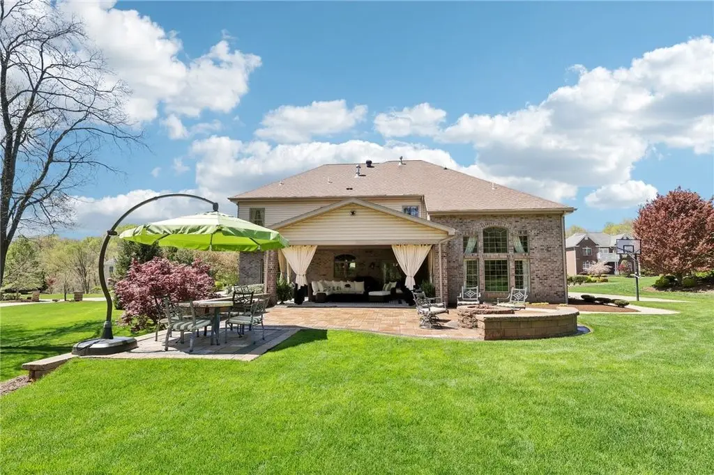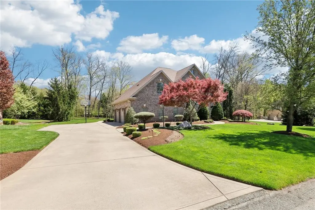 Beautiful brick 2 story home by award winning Suncrest Homes. Built on a level 1.2-acre park-like yard. Large exterior patio (22x20 is under roof) with an outdoor fire pit and hot tub pad. The first floor features: beautiful hard wood flooring, chef's fully equipped kitchen with Wolf range, 2 dishwashers and island seating. The living and dining room are off the stunning foyer. The den/5th bedroom has an adjoining full bath. Large family room with gorgeous fireplace and 14ft ceiling. The second floor is where you will find the master bedroom with gas fireplace, large ensuite bath with custom step in shower, jetted tub, generously sized master closets, and another room that would make a great nursery or awesome closet/ dressing room. Bed 2 has its own ensuite bath, beds 3 and 4 share a jack n jill bath. Finished ll w /full bath, office and game room with built ins, fireplace, wet bar, walk out basement. Oversized 3 gar garage. Minutes from Route 22, the schools, shopping & restaurants.