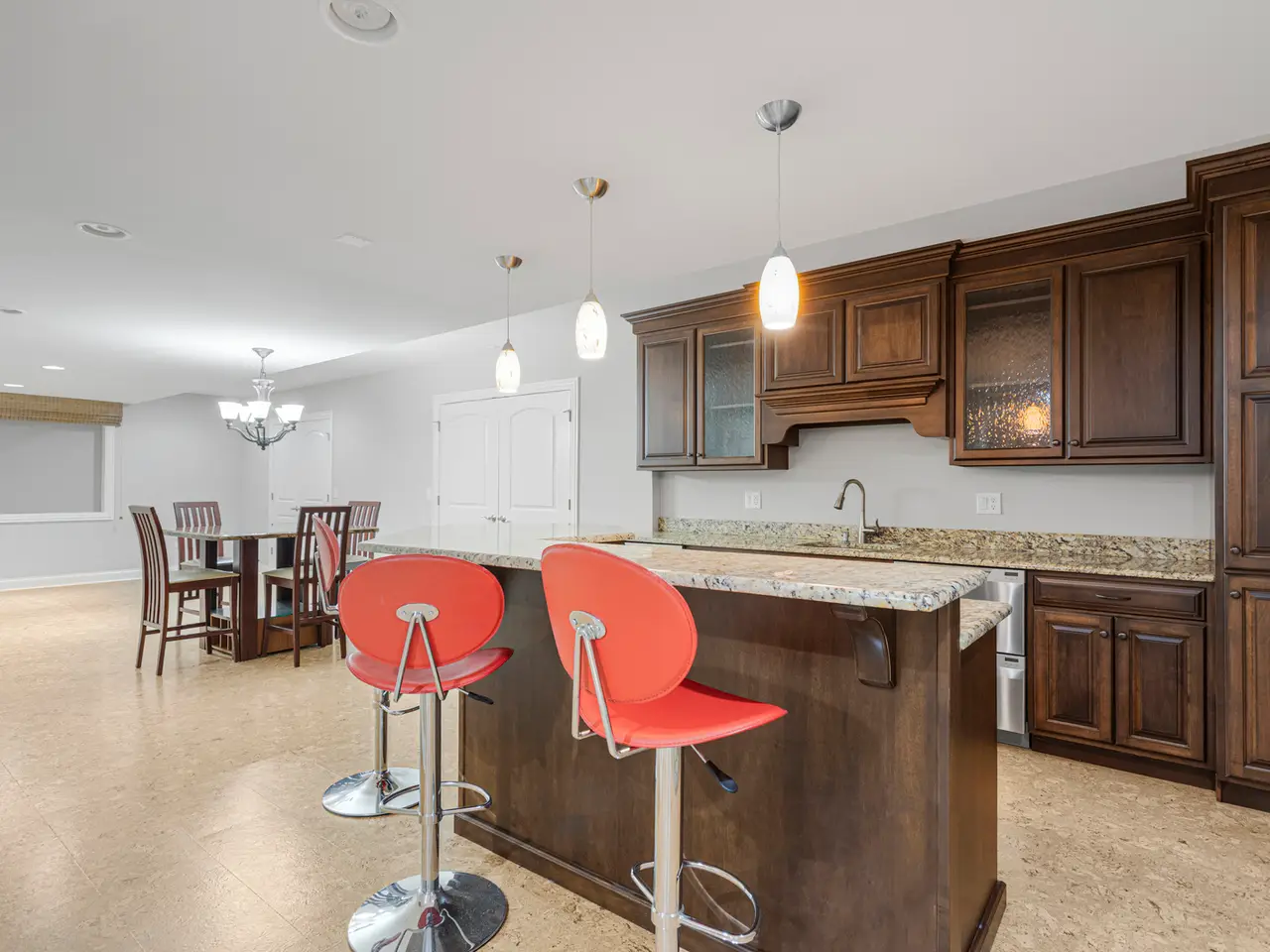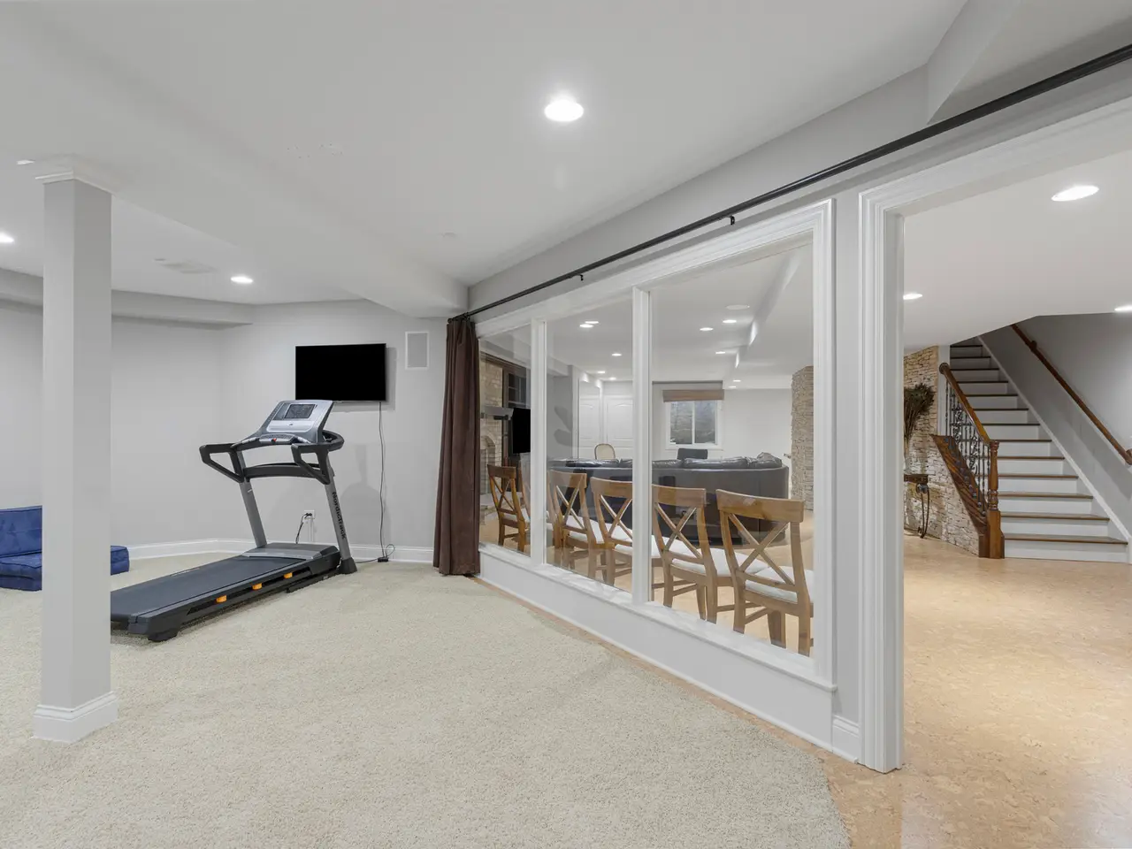 Gym and wet bar in basement