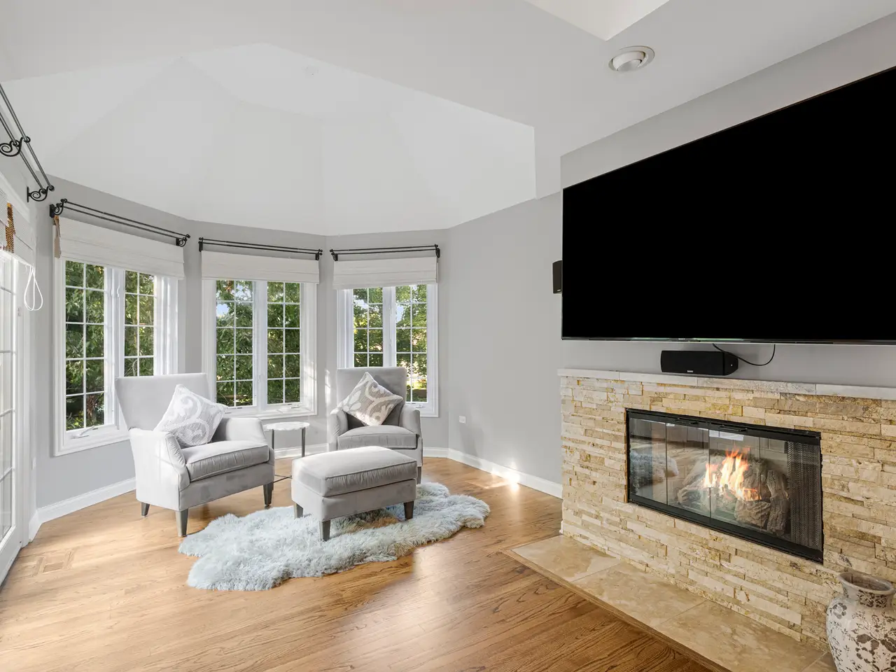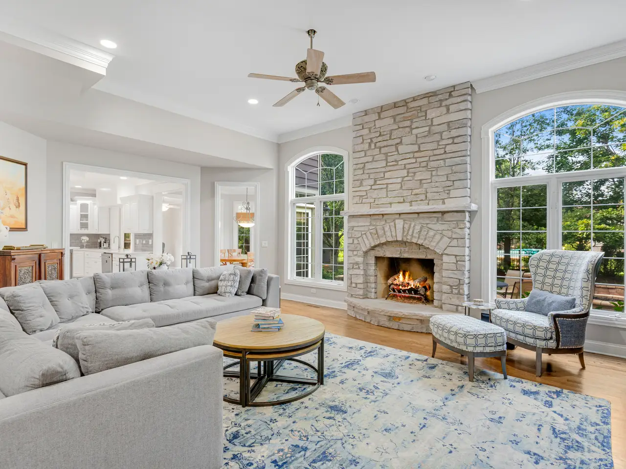Welcome to this luxurious, stunning home that epitomizes elegance and comfort. Featuring five spacious bedrooms with four full baths and two half baths, this home has it all. A very large two-story foyer. Two sets of stairs going up to the second level—one from the foyer and another from the family room. Separate formal dining with butler pantry. Master suite with sitting area and a balcony, also boasts a huge bathroom with luxury porcelain and marble tiles, double sink vanity, oversized bathtub, and a very large walk-in closet. All bathrooms updated with quartz countertops. The guest bedroom includes its own private bath with a walk-in closet. It has a large finished basement with huge recreational area, the gym, wet bar, bathroom. The home features hardwood floors throughout, four fireplaces, updated kitchen, a bright sunroom cum informal dining area. Enjoy the excellent backyard with fire pit—perfect for relaxation and entertainment. A brand new roof. Top-rated Naperville schools. Excellent location near downtown Naperville, restaurants. Home is truly a gem. Agent is related to the seller.