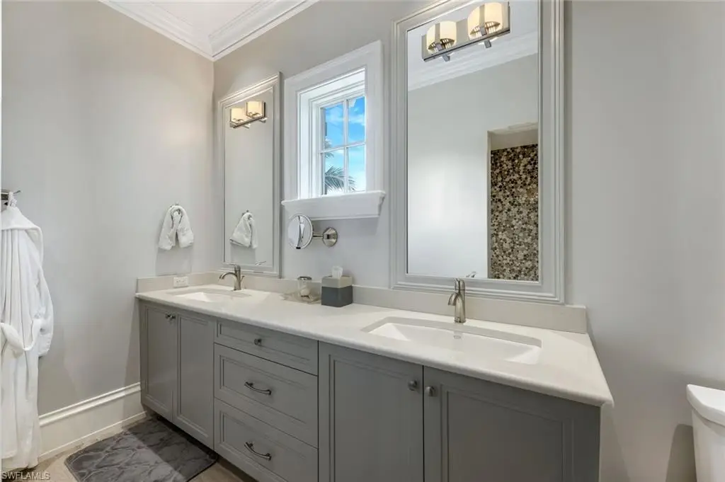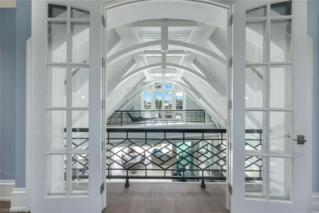 Live in casual elegance in this beautiful custom bay front home in The Moorings, timelessly designed by Harrell & Company Architects on just under a private + acre premier southern exposure lot. This private oasis has been professionally decorated with a coastal flair. Watch the dolphins and eagles on Hurricane Harbor from the great room's floor to ceiling windows with zero corner sliding doors for seamless indoor-outdoor living and entertaining. Upgrades galorea soaring back lit quartz accent wall, cathedral ceilings with beautiful mill work; each ceiling a masterpiece, an indoor/outdoor bar, perfect for entertaining. There is a private elevator, Lutron lighting, two laundry rooms, two powder rooms and three car garages. The kitchen will delight your inner chef with professional grade appliances, gas six burner range, two dishwashers, walk in pantry and Miele built-in coffee machine. The first-floor master suite features a large walk-in closet with a dressing area and laundry room, private outdoor shower and a lovely view of the bay and the spa with waterfall. The study doubles as a guest bedroom, two queen-size Murphy beds, the second-floor hosts 2 additional bedrooms and baths, wet bar, family room loft and bayfront deck with a firepit. Overlooking the pool and bay you will find the cabana with bedroom and bath. The travertine lanai features a covered dining and living areas with wet bar, TV, grilling area, retractable screens, and shutters. The sparkling pool and spa are located on the terraced lawn featuring a firepit, several seating areas leading to the bay front deck with boat and jet ski lifts. Built in 2016 using the highest quality materials by D. Garrett Construction at a high elevation, this home has never been damaged by hurricane or storm surge. For your peace of mind there is a security system with cameras, high impact glass windows & doors, all at a high and dry elevation. This house is a true showplace. The Moorings is conveniently located west of 41 in the City of Naples and features a private residence Beach Club. Two miles from 5th Avenue and all that Naples has to offer. Location, Luxury and Beauty!