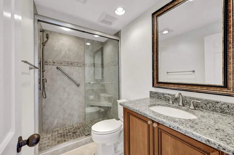 - Chef's kitchen with quartz countertops and custom cabinetry