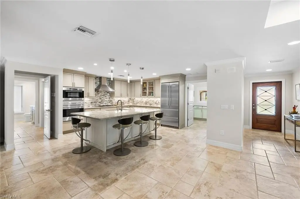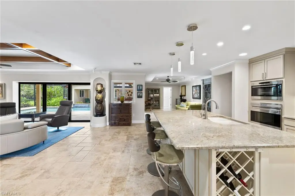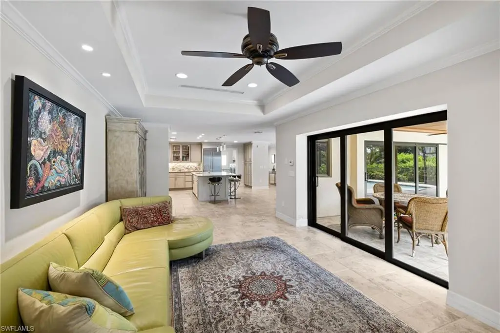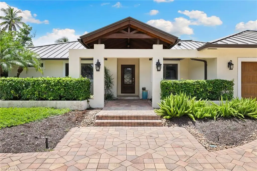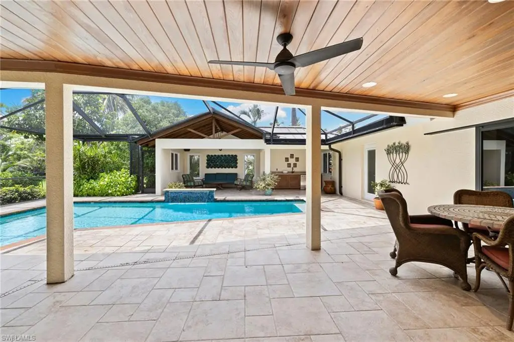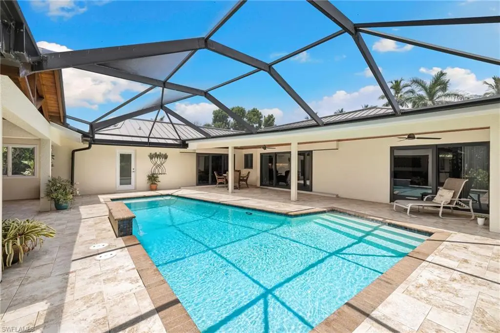 NO WATER INTRUSION FROM PAST STORMS! A 40-foot boat slip and 37.5 feet of private beach frontage just steps away from your door. The Port Royal Club just 10 houses down on prestigious Gordon Drive. Discover modern living at its finest in this beautifully appointed residence, perfectly nestled in the sought-after Port Royal neighborhood. Boasting nearly 2,755 square feet of luxury, this one level ranch styled home features four spacious bedrooms plus a study, making it ideal for families or those seeking additional space. Every modern convenience is at your fingertips, including three elegant bathrooms and a sprawling outdoor living area. Enjoy the ultimate Florida lifestyle with a 40-foot deeded dock on Champney Bay and fractional ownership in private beach access! Step outside to find your very own tropical paradise, complete with a summer kitchen, a tongue and groove loggia, and a sparkling pool with a fountain. The grounds are further enhanced by an array of fruit trees, creating a serene and inviting atmosphere for outdoor entertaining. Inside, sophisticated finishes abound. The gourmet kitchen is equipped with top-tier appliances, perfect for any culinary enthusiast. Pocketing slider doors seamlessly blend the indoor and outdoor spaces, while custom millwork, including stunning ceiling details and linear diffusers, adds an extra layer of elegance. Residence is finished with a newer roof and the security of impact doors and windows throughout. Situated among the prestigious estates of Port Royal, this residence also grants eligibility for a Port Royal Club associate membership. Plus, it's just a short distance from Naples' renowned Third Street South and Fifth Avenue South, where you’ll find exquisite dining, shopping, and entertainment options. Embrace the Naples lifestyle in this extraordinary home - where luxury meets comfort in every corner!