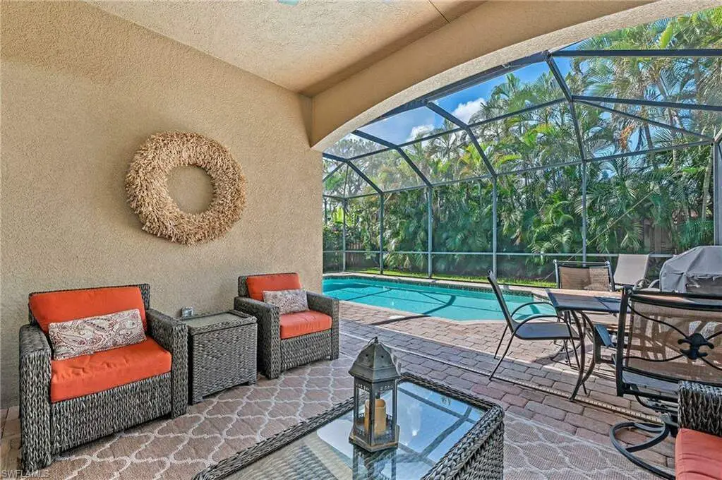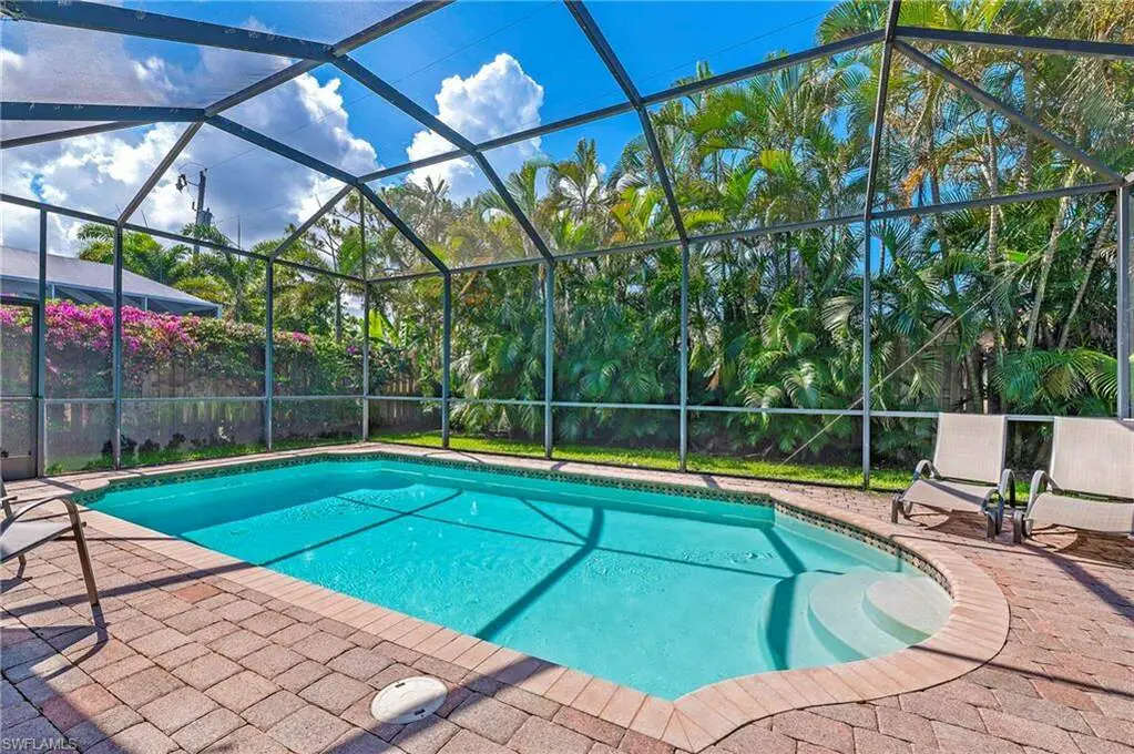 What are you waiting for? Significant price reduction and being offered turnkey furnished-this 3-bedroom plus den, 3-bath home with a two-car garage and screened pool is ready for you. Located in the sought-after 500 block of Naples Park, this move-in ready property combines quality finishes with a prime location just a short walk or bike ride to the beach to enjoy the beautiful sunsets. Inside, you'll find high ceilings, porcelain tile throughout (no carpet), and a gourmet kitchen with stainless steel appliances, granite countertops, and an oversized breakfast bar. The expansive great room is perfect for gathering, while solid wood doors, impact glass windows and doors, and a brand-new AC (2022) add comfort and peace of mind. The primary suite and guest rooms are spacious, with well-appointed baths. Step outside to a pavered, screened pool deck surrounded by lush landscaping and a fully fenced backyard-offering privacy and a perfect retreat. No HOA fees, Flood Zone X (no flood insurance required), and surrounded by newer homes with great curb appeal. This home is ideal for a full-time residence, seasonal escape, or investment property with proven rental history and future bookings already in place. Turnkey, upgraded, and in one of Naples' most desirable neighborhoods-schedule a showing today.