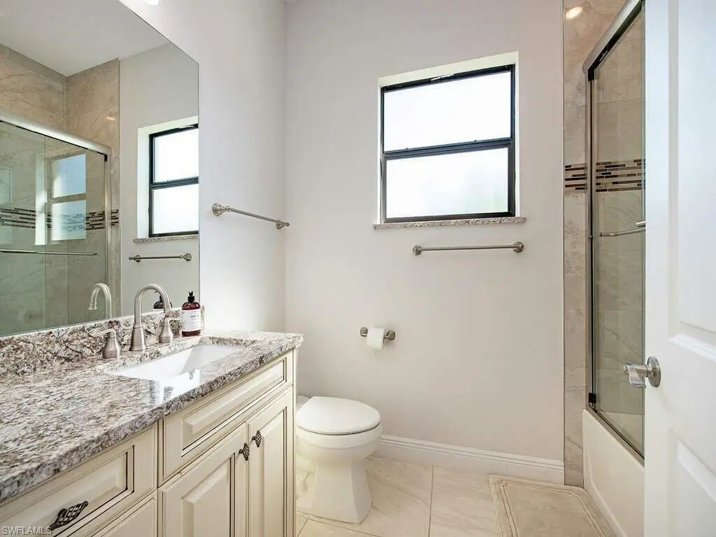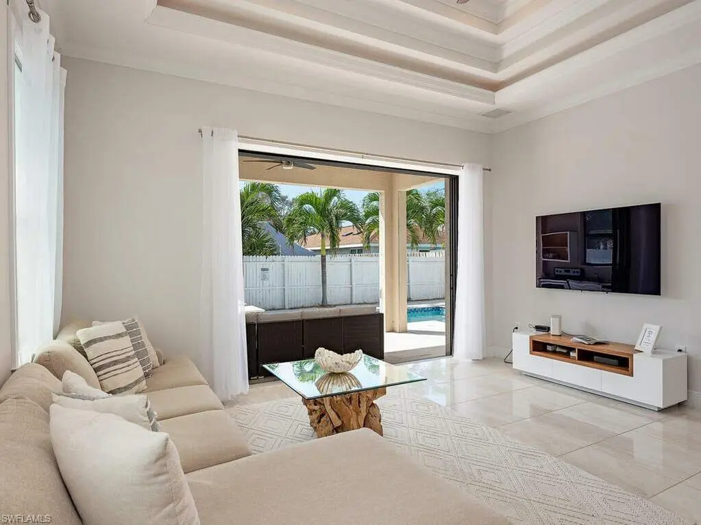 Discover the epitome of coastal living in this captivating Naples Park residence, designed with the discerning family or investor in mind. This 2018-built "Beach Bungalow" offers a delightful blend of comfort and elegance, complete with a pool & spa, and is located just steps away from the pristine beaches of Naples, Florida. Enjoy the luxury of four spacious bedrooms and three modern bathrooms, tailored to accommodate both a bustling family life and the serene moments of a vacation retreat. The two-car garage provides ample storage, while the extra-wide paver driveway adds convenience with additional parking space. Step through the impressive 8-foot front door and be greeted by the sleek 22-inch porcelain tile floors, sprawling across all living areas and bedrooms, ensuring easy upkeep. The living room and master bedroom boast beautifully designed triple-trayed ceilings, adding a touch of sophistication to each space, while single-trayed ceilings adorn the kitchen and additional bedrooms. The open-concept chef's kitchen is a culinary dream, featuring antique accent wood cabinets, high-level granite countertops, stainless steel appliances, and a stylish tile backsplash. Further enhancing the home's allure are the impact-resistant windows and glass sliders, providing peace of mind during stormy weather, while the disappearing stacking rear sliders seamlessly blend indoor and outdoor living. Entertain in style on the expansive lanai, complete with a built-in summer kitchen overlooking a generously sized fenced yard with enough room for a custom pool addition. Take advantage of the home's proximity to Vanderbilt Beach, as well as top-tier restaurants, shops, and entertainment at Mercato and Waterside Shops. Presented fully furnished, this home is not only a perfect family haven but also holds tremendous potential as a VRBO or Airbnb vacation rental, promising additional income when not for personal use. Experience this exquisite Naples Park residence's fusion of luxury, convenience, and investment potential.