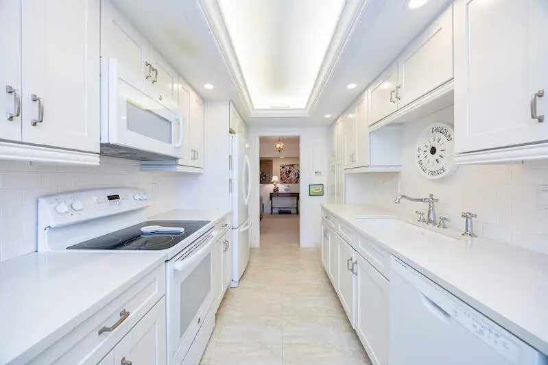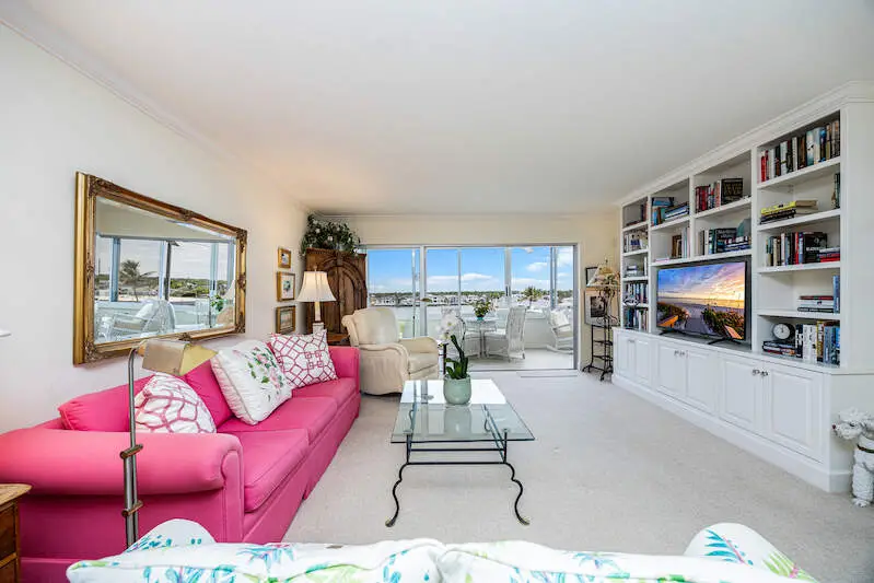 Discover Harborside West, where coastal charm meets modern comfort! This spacious three bedroom, 2.5 bathroom condominium encompasses over 1,700 square feet of living space with breathtaking views of Venetian Bay. Step inside to an expansive living room and glass-enclosed lanai, both showcasing stunning postcard-worthy views of the sparkling bay. The bright galley-style kitchen has been thoughtfully updated with modern cabinetry, countertops, appliances, and tiled flooring. The residence features two primary suites, each with en-suite baths and generous closet space, while the versatile third bedroom can serve as a guest room, home office, or den. The lanai, with stackable glass windows, offers year-round enjoyment-perfect for relaxing while watching boats glide by or dolphins play. For added comfort and ease, this unit includes an attached garage and a private storage closet! Convenient beach access is located just across the street, making coastal living a breeze. Residents of Harborside West enjoy a host of amenities, including a recently renovated social room, fitness center, hobby room, library, barbecue and picnic areas, fishing pier, resort-style pool, and ample storage facilities. The community also provides bike storage, a vehicle wash area, and sidewalks for leisurely strolls. Located in the sought-after Moorings neighborhood, this condo is steps away from Naples' pristine beaches and just moments from upscale shopping and dining at Venetian Village. Embrace the best of Florida living in this move-in-ready residence!