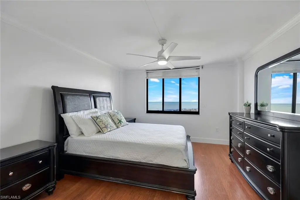 Luxury Living with Panoramic Gulf and Bay Views! Welcome to your dream coastal retreat - a coveted NW corner condo on the 11th and top floor, offering breathtaking Gulf and Bay views from every room. This remodeled gem features an open-concept kitchen and an electric grill on the terrace, perfect for enjoying the outdoors while preparing meals. Step onto the wraparound lanai or the private master balcony to soak in serene sunrises and stunning sunsets over the mangroves and preserve. Located just a short stroll from Vanderbilt Beach and Wiggins Pass State Park, this condo combines tranquility with unbeatable convenience. Inside, you'll find abundant storage with a walk-in closet and additional spaces conveniently located across the hall and near the newly updated lobby. The building has also been enhanced with modern social and fitness rooms, providing a fresh, inviting atmosphere for residents. Surf Colony I offers resort-style amenities, including covered parking, a heated pool, and a tiki hut overlooking Turkey Bay, teeming with herons, dolphins, and manatees. Stay active with Pickleball, Tennis, Bocce, and kayak leasing spaces, while marina boat docks are available for lease, subject to availability. HOA fees cover everything except electricity, ensuring hassle-free living. For investors, the property offers flexibility with leasing allowed up to 9 times per year with 30-day minimums. Tucked away on Naples' "Best Kept Secret," the serene Bluebill Ave. peninsula, you'll enjoy peace and privacy while being just minutes from world-class dining, shopping, and entertainment. Experience coastal living at its finest - paradise with all the modern conveniences!