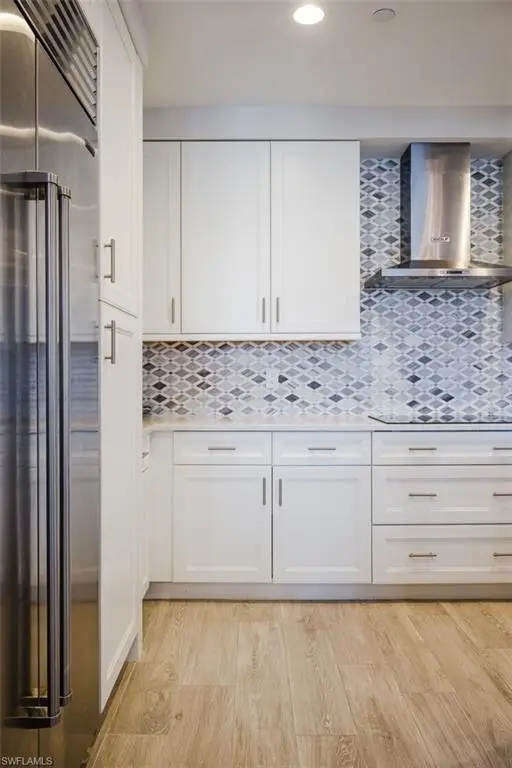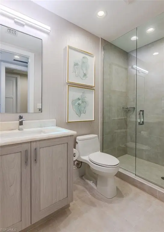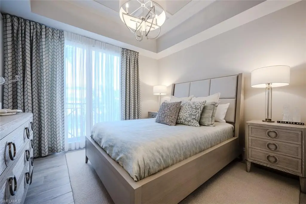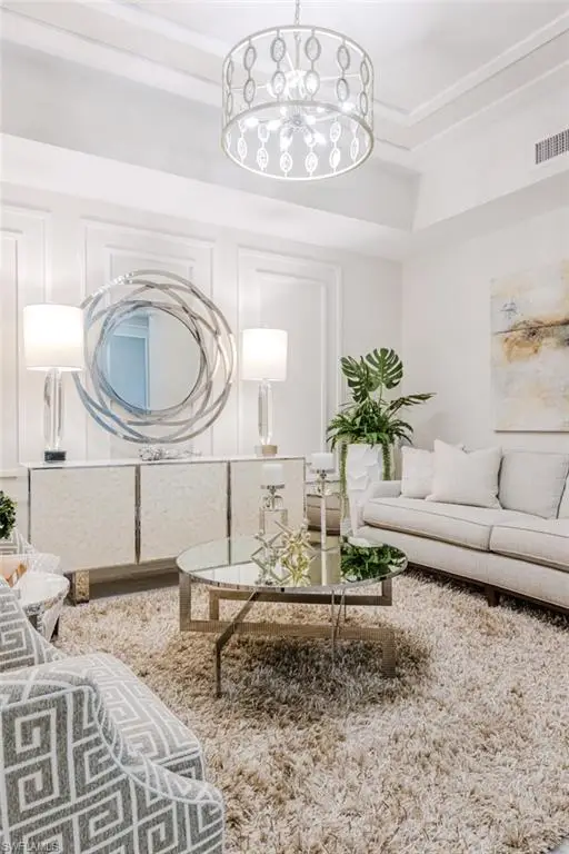 Experience Elevated Living in the Heart of Naples. Step into nearly 2,500 square feet of refined elegance in this stunning former model residence, located in the prestigious Naples Square community. This expansive 3-bedroom + den, 3-bathroom condominium perfectly blends contemporary design with luxurious comfort. Crafted for those with discerning taste, the residence showcases exceptional finishes throughout - motorized Hunter Douglas blinds, custom designer lighting, and a chef's kitchen that's as functional as it is beautiful. Outfitted with premium appliances including Wolf, Sub-Zero, Bosch, and Zephyr, the kitchen features a spacious quartz island, induction cooktop, smart wall oven, and a striking marble backsplash, making it a true culinary showpiece. The open-concept layout effortlessly connects the kitchen, dining, and great room, creating a spacious and inviting atmosphere ideal for entertaining or everyday living. Oversized sliding glass doors lead to a generous terrace with expansive views, creating a seamless transition between indoor and outdoor living. Sophisticated fixtures and modern design elements add warmth and depth throughout the home, while the building itself offers a suite of world-class amenities. Enjoy the resort-style pool and spa, outdoor grilling area, a state-of-the-art fitness center, and an elegant club room with billiards and large-screen TVs. Additional features include one reserved parking space in the secure, lower-level garage, an additional unassigned space, a humidity-controlled storage locker, and covered bike storage. Pet lovers will appreciate the community's welcoming pet policy. Located just steps from the boutiques and fine dining of Olde Naples, the newly built Gulfshore Playhouse, Bayfront, and Baker Park, this residence offers the ultimate in walkable luxury living. Moments from the sugar-sand beaches, this home invites you to embrace the very best of the Naples lifestyle.