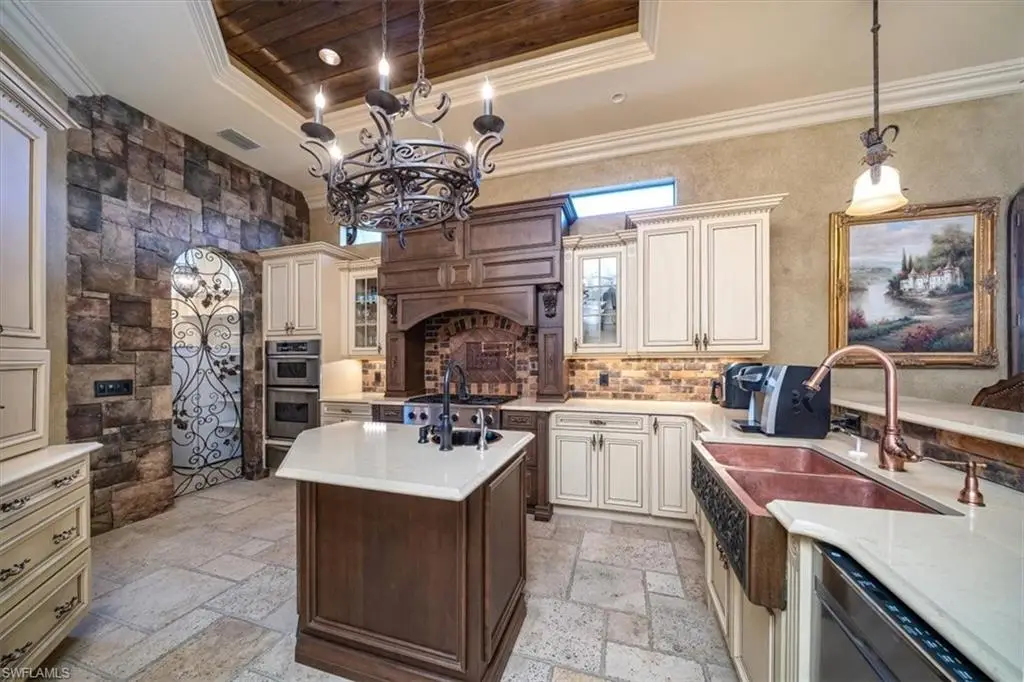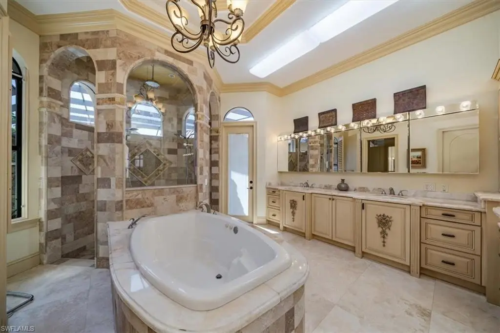 Experience luxury living in this spacious, beautifully appointed 7-bedroom home, designed with superior finishes and stately curb appeal. This exquisite 7,000 square foot property is part of a 2.5-acre fully-fenced gated family compound estate with manicured grounds, accessed via a double electric gated entry. The main house features a charming brick paver driveway, while a separate asphalt drive leads to a large 2,640 sq ft workshop/garage with RV-sized roll-up doors and climate-controlled spaces. This versatile area is perfect for a home-based business, RV, boat, or car collection. Enhancements to the estate include offices, guest suites, and a kitchenette, as well as a magnificent 1,000 sq ft primary bedroom closet with glass-enclosed sections, a cedar-lined room, and a fur vault/wine room. The primary suite also boasts a private spa with steam shower. The living space is enriched by a gas fireplace, and the kitchen is equipped with a six-burner Dacor gas stove and a dual-room pantry. The dining room features a wet bar, while an air conditioned gazebo with wet bar, sink and seating complements the pool and spa area, creating an ideal setting for entertaining. Additional amenities include a water treatment system in a 16x12 CBS building, Croci roll shutters, and generators for both the house and the workshop. This estate offers unparalleled luxury and functionality for discerning buyers.