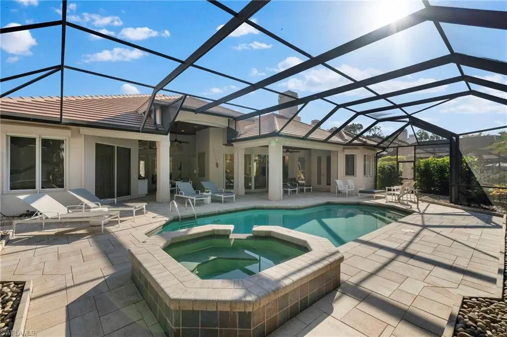 Welcome to 3111 Indigobush Way, a stunning single-family home located in the prestigious Grey Oaks community of Naples. This exquisite property features 3 spacious bedrooms, each with en-suite bathrooms, and an additional den, providing ample space for both relaxation and work. Recently updated with a brand-new roof, this home offers peace of mind and enhanced curb appeal. The open floor plan seamlessly connects the large kitchen and family room, making it perfect for entertaining. High-end appliances from Bosch, Subzero, and Thermador elevate the culinary experience. Step outside to your private oasis, where a large covered lanai overlooks the screened pool and spa - ideal for enjoying the Florida sunshine. Situated on the 14th fairway of the Pine Course, this home not only offers breathtaking views but also golf facilities, tennis & racquet sports, wellness and fitness, dining options and other social activities. Additional features include a two-car garage, zoned heating and cooling, and access to community amenities such as a clubhouse, fitness center, tennis courts, and a resort-style pool. This home is more than just a property; it's a lifestyle choice that promises luxury living in a serene environment. Don't miss your chance to own this exceptional property in one of Naples' most sought-after neighborhoods. Experience the lifestyle that 3111 Indigobush Way has to offer!