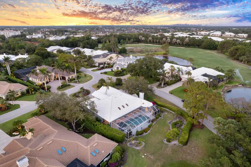 Exceptional estate situated on a rare corner lot with breathtaking lake views in the prestigious Audubon Golf & Country Club in North Naples. Offers highly sought-after SOUTHERN exposure for breathtaking sunsets and optimal sun over the pool. Originally built as one of Audubon's model homes, this beautifully designed home offers 3,245 square feet under air with 4 spacious bedrooms, 4 full bathrooms, a 3-car garage, soaring high tray ceilings, and beautiful French doors, flooding the interior with natural light. Additional highlights include a 2014 roof, hurricane shutters, new hot water heater (2021), whole-house generator (2022), 500-gallon propane tank, and dual driveways for added convenience. The open-concept layout seamlessly blends indoor and outdoor living, with the lanai offering a serene retreat with a pool, spa, ample lounging space, and stunning lake views -perfect for relaxing or entertaining. Inside, you'll find a spacious kitchen boasting white cabinetry, white countertops, and plenty of storage. The primary suite features private French doors to the lanai/pool deck, a large walk-in closet with custom built-ins, and an ensuite bathroom with dual vanities, a separate soaking tub, and spacious shower. Audubon's prime location is just 5 minutes from Mercato and world-class beaches, and the community offers a gated/guarded entrance, an 18-hole championship golf course, tennis, pickleball, a Bayside boardwalk, and a newly renovated clubhouse with dining and a second beautiful poolside club and cafe.