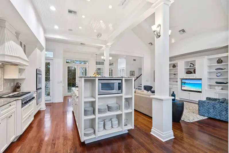 Discover an extraordinary opportunity, a Grand Family Retreat in the Heart of Naples with an unmatched location and irreplaceable corner, oversized lot! Seamlessly blending elegance with the comfort of modern living, this five bedroom plus den residence is a warm and welcoming haven, that exudes both timeless charm and contemporary luxury. From the moment you step into the impressive foyer, you'll sense the home's inviting spirit. Rich wood flooring, a coastal fireplace, and bright natural lighting all set the tone for refined yet relaxed living, perfect for both quiet family evenings and lively gatherings with friends. At the heart of the home lies an elegant family room and kitchen with its vaulted ceiling, abundance of cabinetry and integrated appliances with gas range, making family breakfasts or weekend entertaining a delight. This airy oasis invites you to linger over meals while enjoying soothing views of the private outdoor swimming pool surrounded by lush greenery. Meticulously maintained throughout, and a brand-new roof, skylights and gutters installed as of the end of 2024 as well as freshly painted. Whether you are looking to relax, work, study or more, a comfortable study/TV room offers a peaceful retreat, ideal for balancing productivity and relaxation. Additional amenities like the front porch to watch the sunsets elevate everyday living and roof top to watch the world go by. Ground floor primary suite features a fully fitted dressing room and large ensuite bathroom, a soothing sanctuary at day's end. A further generous first floor guest suite overlooks an enchanting garden courtyard. Venture upstairs to discover three further double bedrooms, all with ensuite bathrooms and balconies. This remarkable home, steps from the beach and a short walk to Third Street Shops and Dining is an invitation to create cherished memories in a setting that embodies Naples most appealing qualities: heritage, community, and effortless access to both the Gulf Coast and the city. Embrace a lifestyle that celebrates the best of Naples charm and urban sophistication-all in one exceptional family residence.