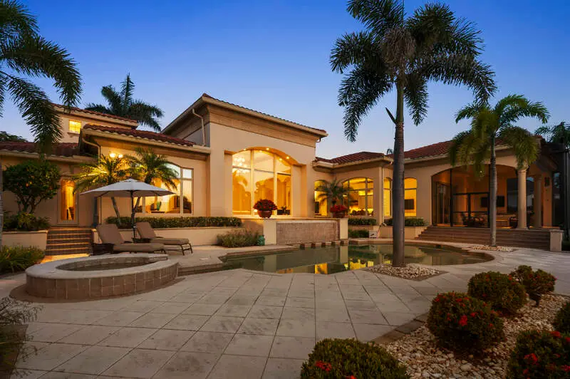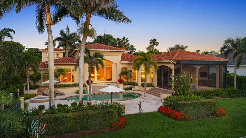 TRANSFERABLE GOLF MEMBERSHIP AVAILABLE! Skip the waitlist and pay only a transfer fee! Ideally situated in the prestigious community of Quail West, this impressive residence offers a thoughtful floor plan complemented by expansive outdoor living spaces including a screened lanai and spectacular golf and sunset views. The luxurious primary suite is uniquely designed with dual en suite bathrooms connected by a shared sitting area creating a tranquil retreat of privacy and comfort. Three additional guest suites offer plenty of space for visitors too. Perfect for entertaining, the open-concept great room flows seamlessly into the chef-inspired kitchen, which features an oversized island, breakfast bar, dual prep sinks, and a walk-in butler's pantry complete with a beverage refrigerator. From terrazzo flooring and tray ceilings to a cozy fireplace and dramatic floor-to-ceiling windows, every detail of this home speaks of refined elegance. The screened lanai includes a covered seating area with an outdoor kitchen, and the custom pool-with integrated spa and sun shelf-is strategically positioned to maximize sun throughout the day. The spacious three-car garage provides ample room for vehicles, a golf cart, and all your Florida lifestyle essentials.