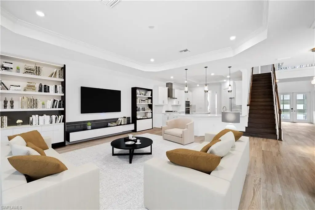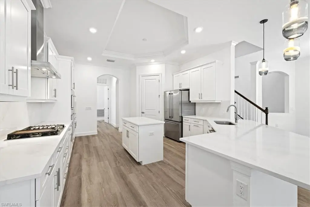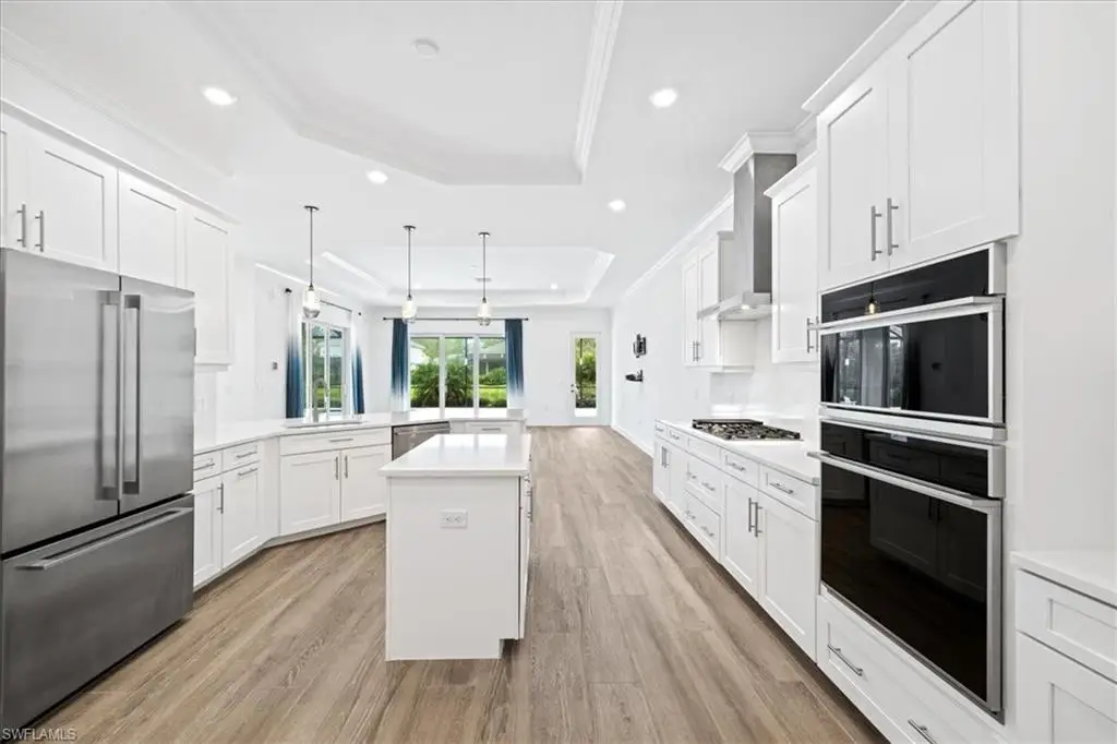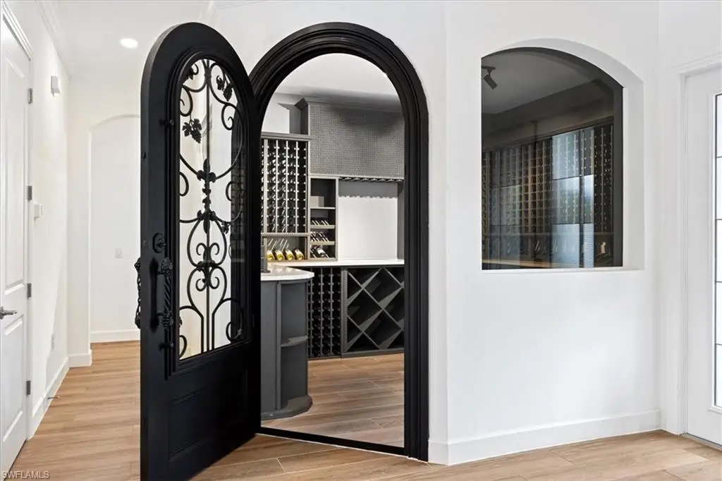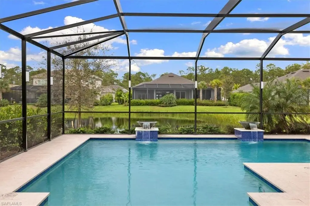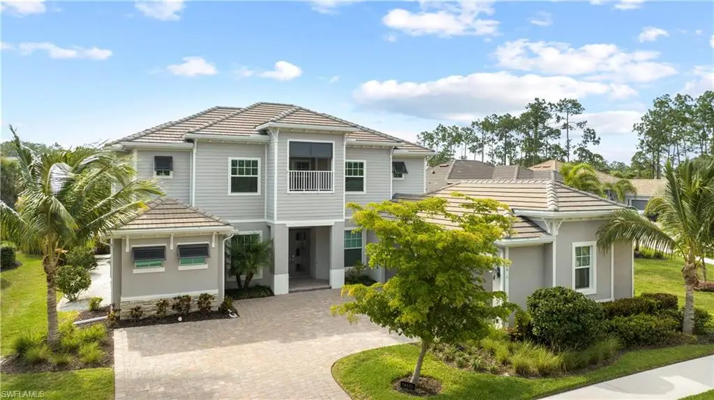 Located in the exclusive, gated community of Sereno Grove, this 2020 estate combines luxury with functionality across its 3,500 sq. ft. of space. The home features 4 bedrooms, 5 bathrooms, a den, a climate-controlled wine room for 1,800 bottles, an upstairs media room, heated pool and spa, a 3-car garage, and extensive patio space with an outdoor kitchen. High ceilings and natural light welcome you, with a design that seamlessly connects the living areas to a chef's kitchen, offering views of the pool and the evening skies. The master suite on the first floor includes a large bathroom, lanai access, and ample closet space. Upstairs, there are 3 bedrooms, 2 bathrooms, and a bonus room with a wine fridge and balcony overlooking the pool. This estate is ideal for those seeking proximity to North NaplesÆ beaches and dining, emphasizing both luxury and practicality for a discerning family. Sereno Grove is a centrally located community with low HOA fees.