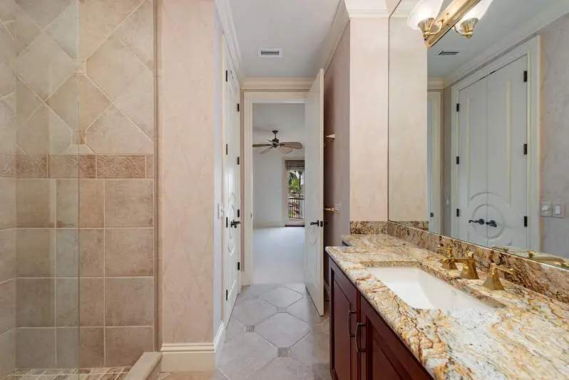 Tucked away in one of Naples' most prestigious waterfront neighborhoods, this masterfully designed residence is a sanctuary of elegance, comfort, and mindful living. Set on a prized T-lot with expansive canal views, the home offers exceptional privacy, easy boating access, and the rare ability to accommodate a large vessel with ease. Inside, a refined blend of traditional design and modern luxury creates a warm, welcoming atmosphere. With six spacious bedrooms-each with its own private ensuite-the home effortlessly balances everyday functionality with elevated style. A separate guest suite with its own entrance, kitchenette, and laundry facilities offers exceptional flexibility for visitors or extended family. Soaring ceilings and thoughtfully curated architectural details define the interior, from the grand arched passages to the custom millwork and serene color palette. A dedicated meditation space and the home's northern rear orientation invite harmony and wellbeing, creating a peaceful retreat inspired by the principles of balanced design. The home also includes two half-baths, a pool bath, and an elevator for convenience. A handsome study with panoramic water views provides a perfect work-from-home setting, while a temperature-controlled wine room offers the ideal environment to store and showcase a curated collection. Engineered for healthy living, the property is equipped with a state-of-the-art three-tank whole-house reverse osmosis system that delivers high-quality, purified water throughout. Lush landscaping, private terraces, and an outdoor setting reminiscent of a Mediterranean villa make this home feel like a world away-yet it's just moments from the beach, upscale shopping, and top-tier dining. Whether you're searching for a luxurious year-round home or a remarkable seasonal getaway, this exceptional property offers the perfect combination of location, lifestyle, and long-term value in the heart of coastal Naples.