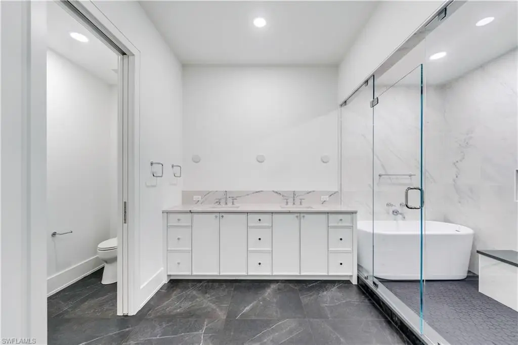 Step into modern coastal luxury with Residence 205 at Stella Naples, a brand-new, impeccably designed condo in one of NaplesÆ most exclusive boutique developments. The Aria floorplan spans 2,131 square feet of refined living space, featuring two spacious bedroomsùeach with its own en suite bathùand a private rooftop deck suite that sets this home apart. Seamlessly blending indoor and outdoor living, the expansive western-facing lanai opens just off the living room, capturing golden afternoon light and providing the perfect setting to relax or entertain. Inside, no detail has been overlooked. Enjoy wide-plank European white oak floors, custom Ruffino cabinetry, Cambria quartz countertops, and curated designer finishes throughoutùfrom hardware and faucets to LED-integrated lighting and indoor/outdoor fireplaces. Motorized window coverings, solid core doors, and a premium appliance package add convenience and elegance. With two covered garage parking spots, a private storage room, and only nine total residences in this exclusive 2024 development, Stella offers the ultimate in privacy and sophisticationùjust a short stroll from Fifth Avenue South and the white sands of the Gulf. Whether you're seeking a serene retreat or an entertainerÆs paradise, Residence 205 delivers the pinnacle of Naples luxury living. Come experience what makes this award-winning community truly exceptional.