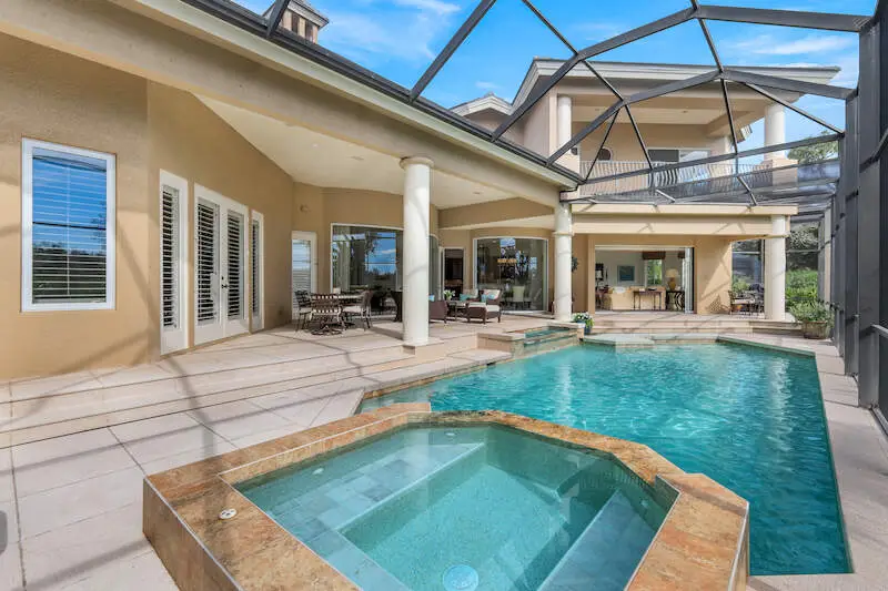 A perfect canvas for luxury living on coveted Gormican Lane, a quiet cul-de-sac street with 26 private estates in the heart of Collier's Reserve! Sited on a premium OUT-OF-FLOOD-ZONE lot with sunny SOUTH exposure and spectacular PANORAMIC GOLF VISTAS, this custom-built residence fuses good scale with mindful details, an abundance of natural light and contextual architecture that speaks to its surroundings. The two-story design lives like a ranch where the floor plan flows organically, with two bedrooms offering privacy on the upper level while the owner's suite, another bedroom suite, an office and seamless day-to-day spaces make up 3400 SF of no-stairs living. An expansive lanai with ample seating, lounging, al-fresco dining and BBQ areas around a renovated 32' pool w/ spa is the ideal setting to host family and friends. The remastered chef's kitchen with butler's pantry and Sub-Zero & Wolf appliances incl. 6-burner gas range lives up to its oft-touted billing as heart of the home. The remodeled owner's suite and renovated en-suite bathrooms are highlights as is the spacious office with warm wood flooring and a beautiful tray ceiling. The 2-car garage is complemented by a separate bay for your golf cart and full-wall cabinet built-ins for ample storage. Topping it all off, upgrades include a NEW FLAT-TILE ROOF, IMPACT RATED HURRICANE PROTECTION and newer AC systems. Developed by the Collier family as the first-ever Audubon International Sanctuary club, Collier's Reserve offers a full slate of golf, tennis & pickleball programs, fitness & wellness, bocce, even kayaking, complete with a fun social calendar around casual and fine dining venues. Welcome Home to Arthur Hills' Eco-Friendly Paradise!