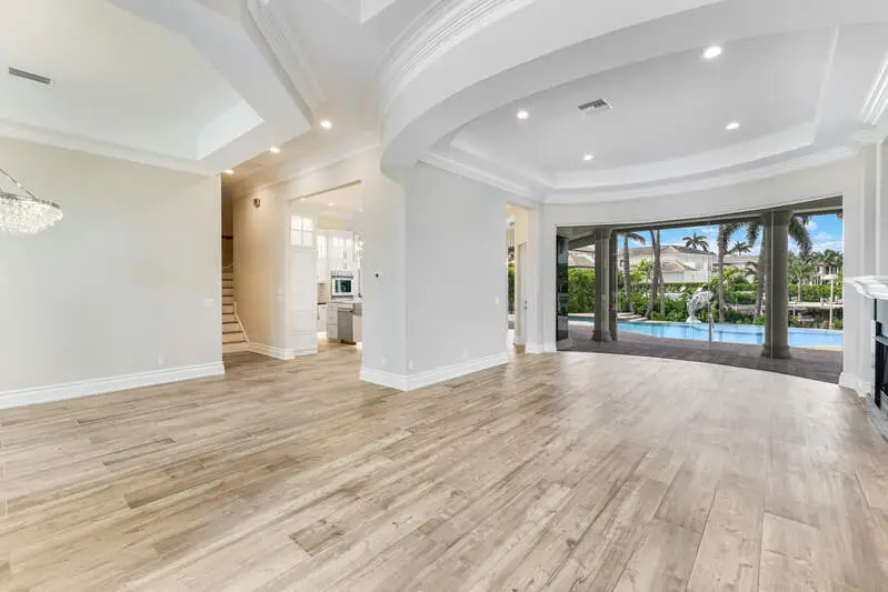 As you step into the formal living room, you're greeted by awe-inspiring water views framed by floor-to-ceiling windows, complemented by a cozy gas fireplace. Enjoy spectacular sunsets from your new residence in The Moorings, situated on .31 acres with southwest rear exposure on Compass Pass, where you'll find your boat dock with a lift that can accommodate a substantial-sized boat. Quick, direct Gulf access with one bridge is a boater's delight. Five bedrooms plus a den, a large bonus room, five and a half baths, as well as an oversized attached garage with a circular drive provide ample space for your car collection and street-legal golf cart. The generously sized family room, with pocketing sliding doors opening up to your amazing outdoor living space, will surely become a favorite spot for relaxing and enjoying time together. The sprawling master suite, with dual vanities, a jetted tub, walk-in shower, his-and-her custom closet systems, a separate library or den with beautiful French doors, and an additional first-floor en suite bedroom, offers ultimate comfort. Upstairs, you'll find three inviting bedrooms with custom closets and en suite baths, plus a pleasant bonus room with a wraparound balcony overlooking the fabulous pool and bay, perfect for a game room or media room. The grand gourmet kitchen, featuring a Thermador appliance package with a six-burner gas range and griddle, two dishwashers, a double wall oven, and a microwave drawer, is sure to excite any foodie. Dual Sub-Zero refrigeration, ample custom under-lit cabinetry with two islands, a fantastic oversized sink, and an ice maker make it perfect for entertaining. The impressive pool, with its expansive sundeck, jacuzzi, and summer kitchen, sits amid a beautifully landscaped, fully fenced backyard, ensuring privacy and security for your loved ones. Nestled on prestigious Mooring Line Drive, you're just moments away from Old Naples, the Venetian Village, Waterside Shops, and the exclusive Moorings private beach.