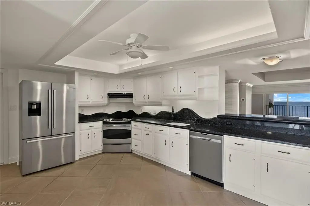 Best views of sunrise and sunset in Naples at the lowest price per sq ft on the beach! Experience the epitome of coastal luxury living with this rare beachfront opportunity, offering over 3,500 sq ft of exquisite living space. This Horizon House penthouse condominium features four spacious bedrooms and four full bathrooms, providing ample space and comfort for you and your guests. Marvel at the unparalleled beachfront views showcasing breathtaking sunsets over the Gulf of Mexico, as well as stunning vistas of the bay and the city skyline. The expansive Western covered lanai offers direct beach views, while the East-facing covered lanai is perfect for entertaining, featuring an outdoor kitchen complete with a grill hood venting to the roof. Enjoy the coastal breeze and panoramic scenery from the comfort of your home. Indoors, the residence exudes elegance and sophistication. Relax by the cozy fireplace and admire the blend of imported, antique French parquet and tile flooring. The updated and expansive kitchen boasts new appliances, a wine cooler, and natural stone countertops. Two large master suites, each with their own master bathrooms, offer ultimate comfort and privacy. An oversized ownerÆs closet provides ample storage space. Noteworthy upgrades include two new air handlers and a new water heater. Horizon House has recently undergone a dramatic transformation, featuring renovated common areas, pool deck, fitness center, and a game room. All electric and galvanized piping throughout the building have been updated. Milestone inspection has been completed, and no special assessments have been identified for future owners.Located minutes from 5th Avenue South and within walking distance to the shops and dining at Venetian Village, this property offers the true Naples coastal lifestyle of luxury and tranquility. Don't miss the chance to own this exquisite seaside retreat, where every day feels like a vacation.