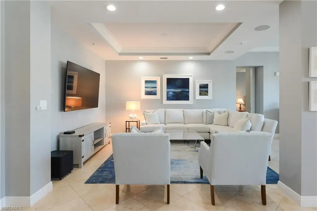 Introducing Residence C-312 at the prestigious Naples Bay Resort Residences - a rare penthouse flat offering effortless luxury and sweeping views of the Naples Bay Marina and Yacht Harbor. This three-bedroom, three-and-a-half-bath residence embodies sophistication with an open, airy layout, three private lanais, and sun-filled interiors in a serene white palette. The gourmet kitchen is equipped with Wolf and Sub-Zero appliances, complemented by designer finishes that blend coastal elegance with modern comfort. Each bedroom is a private retreat, while the expansive main living area seamlessly opens to the water-view lanai, creating an ideal space for both relaxation and entertaining. Residents enjoy exclusive access to a private residence pool and a two-car garage, offering the privacy of a home with the conveniences of resort living. Ownership includes membership to the Naples Bay Club, where members delight in an array of world-class amenities - resort-style pools, a lap pool, lazy river, full-service spa, six Har-Tru tennis courts with an on-site pro, and a cutting-edge fitness and wellness center. The Club also features multiple dining venues: Cafe on the Bay overlooking the marina, the all-new Blackbird Modern Asian - Naples' newest culinary hotspot, Nosh on Naples Bay, an award-winning fine dining experience, BlueWater Bar & Grill for poolside fare, and the members-only Indulge Lounge. Experience elevated waterfront living in the heart of Naples - where every day feels like a resort getaway.