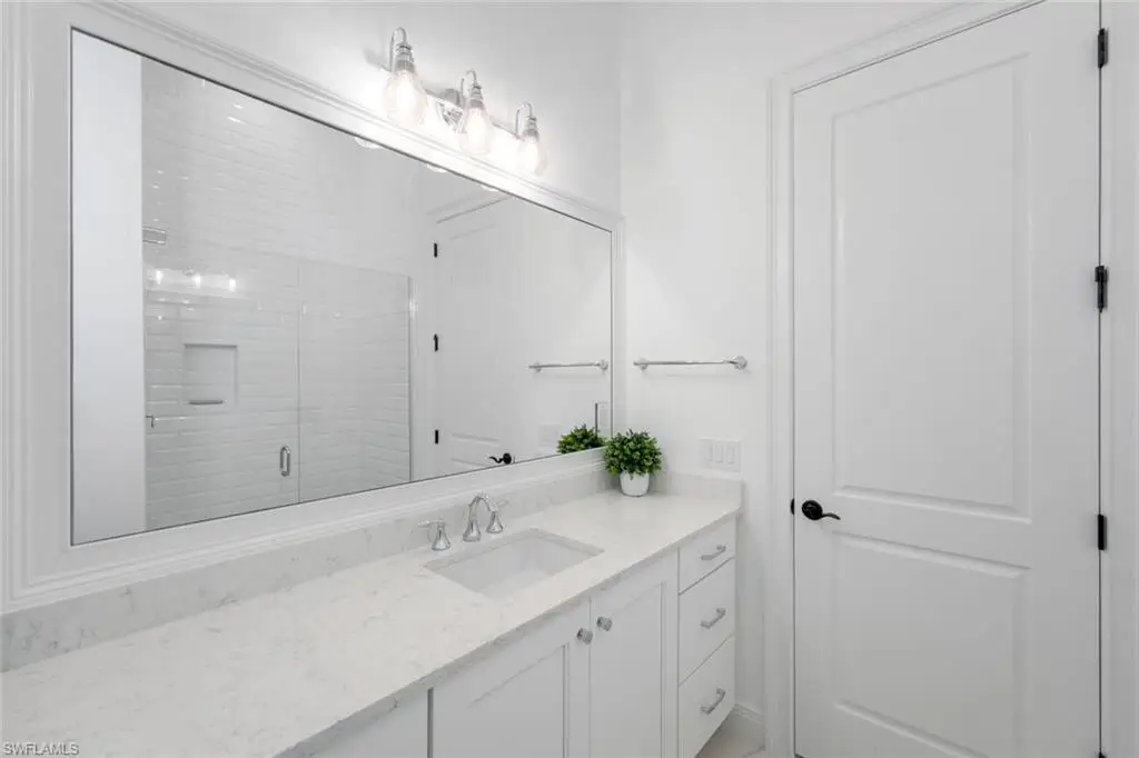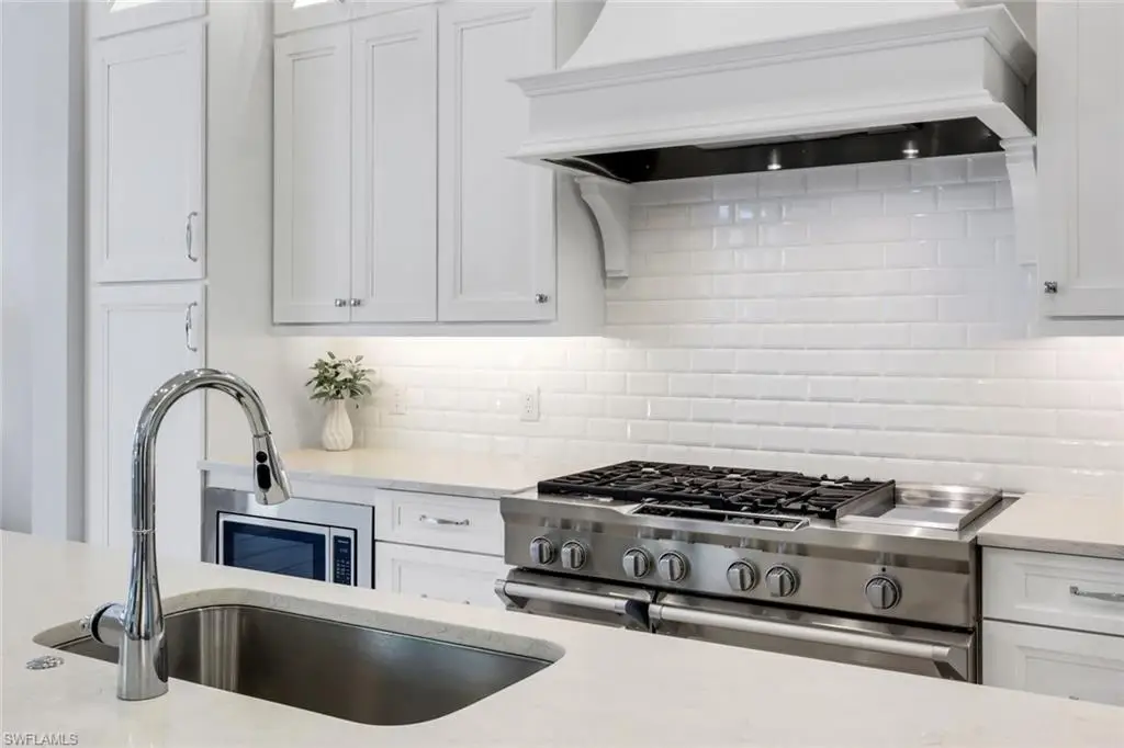 Refined Luxury Living in Fiddler's Creek. Experience sophisticated resort-style living in this beautifully curated residence located in the prestigious community of Fiddler's Creek. Perfectly positioned to capture wide golf course vistas, this home blends modern design with timeless elegance, surrounded by professional landscaping and enhanced by ambient evening lighting. Step through elegant French doors into a light-filled interior highlighted by 14-foot ceilings, a graceful foyer, and striking designer flooring. The spacious great room seamlessly extends outdoors through 10-foot impact glass sliders, revealing a spectacular lanai complete with a resort-style pool and spa, sun shelf, bubblers, and an impressive summer kitchen-perfect for entertaining or quiet relaxation. A wood-accented ceiling adds warmth and architectural character to this inviting outdoor retreat. The gourmet kitchen is both stunning and functional, showcasing an expansive white quartz island, KitchenAid appliances, and custom cabinetry with glass-front uppers and pullout shelving. A bespoke range hood, refined lighting, and plantation shutters throughout the home contribute to a sense of understated luxury. The primary suite is a serene sanctuary featuring a comfortable sitting area, an exceptionally large walk-in closet, and a spa-inspired bath with exquisite finishes. Three additional en suite bedrooms, each with generous closets, offer comfort and continuity of style. A chic powder room off the entry hallway and a spacious laundry room complete the interior. A three-car side-load garage, extended driveway, and enhanced architectural elevation lend curb appeal and convenience. Residents of Fiddler's Creek enjoy award-winning amenities, including a newly renovated lagoon-style pool, spa, fitness center, and an active social lifestyle with pickleball, tennis, and casual or fine dining options. Memberships are available for golf, beach, and boating, while the location offers easy access to Old Naples and Marco Island for world-class shopping, dining, and recreation. This exceptional home captures the essence of refined coastal living-luxurious, inviting, and perfectly designed for today's lifestyle.