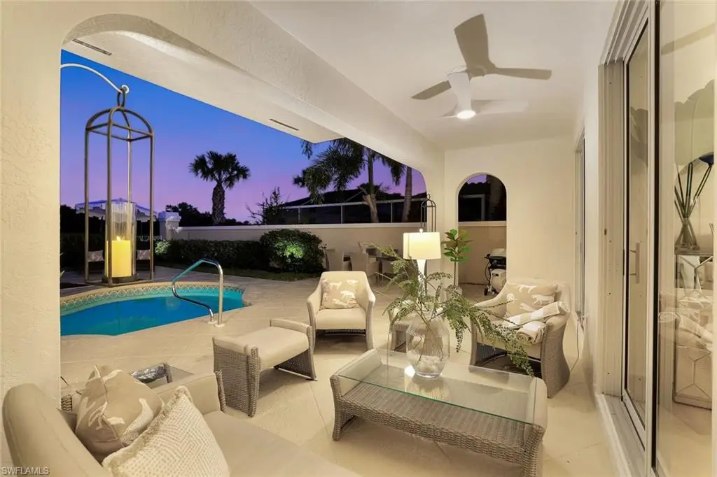 Discover a rare opportunity to own a turnkey 4-bedroom, 3-bath single family home in the exclusive Wyndemere Country Club. This stunning two-story residence, spanning just under 5,000 square feet of indoor/outdoor living space, has been impeccably updated and professionally styled with timeless sophistication. Step inside to soaring ceilings and an abundance of natural light streaming through expansive walls of sliding glass doors. On the main level, elegant formal living and dining areas transition to the pool deck, with covered outdoor living and open dining areas for both intimate gatherings and grand entertaining. Private and serene, offering beautiful views of the #3 green of the white course. A golferÆs dream. The open kitchen family room features sleek granite countertops, a generous center island, and premium stainless-steel appliances with a built-in wet bar. The primary suite is a true retreat, with a private balcony and a stunning view of the pool and golf course. Two ensuite guest rooms and a versatile third that could be used as an office, den or fourth bedroom. Every detail has been thoughtfully curated throughout the home. Wyndemere, an award-winning 2025-2026 Platinum Club of America, offers unmatched amenities, including 27 holes of Arthur Hills golf, 10 HarTru tennis courts, pickleball courts with 165 stadium seating for pickleball pro exhibitions, active bocce teams, full croquet, a resort style zero entry pool, golf simulator, putting greens, driving ranges, 2 pro shops. A full-service spa, salon and state of the art fitness center with a full schedule of group exercise classes and personal training. Enjoy formal dining, as well as indoor/outdoor casual dining at the Tiebreaker, and a lively social schedule of events/parties at the club. Wyndemere, known for its friendly and welcoming membership, is ideally located within minutes to 5th Avenue world class dining, shopping and the spectacular sugar sand Gulf beaches. Live everyday like you are on vacation and come enjoy this amazing lifestyle!