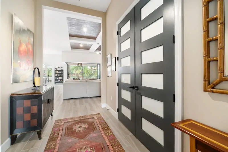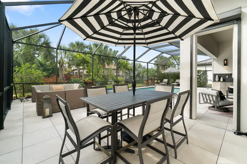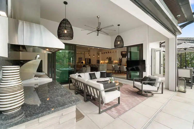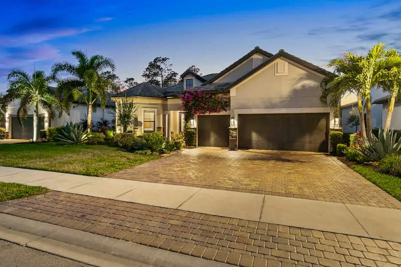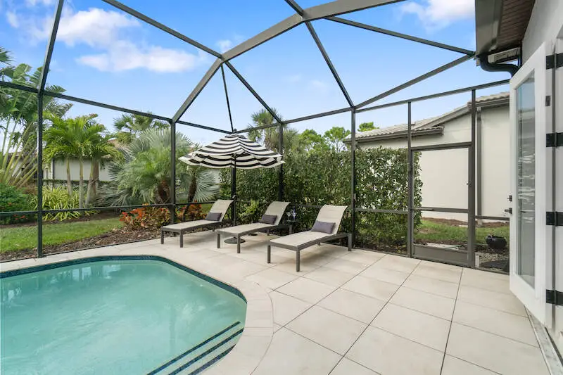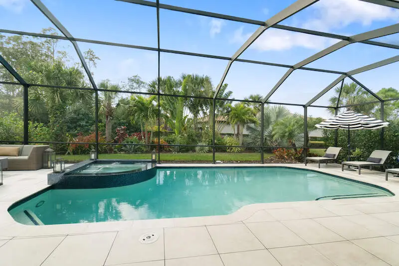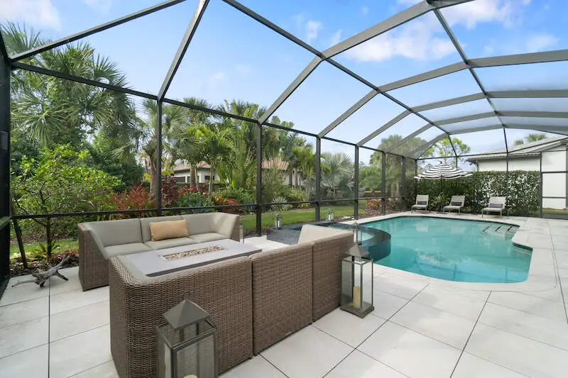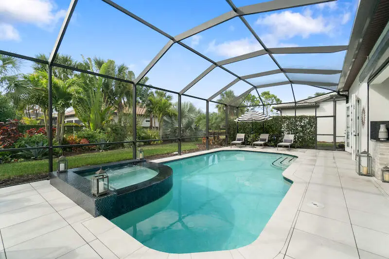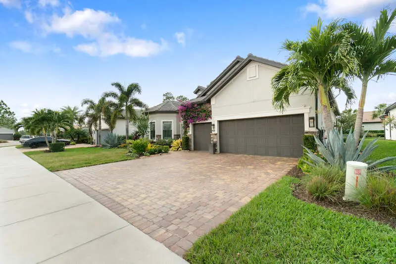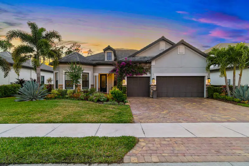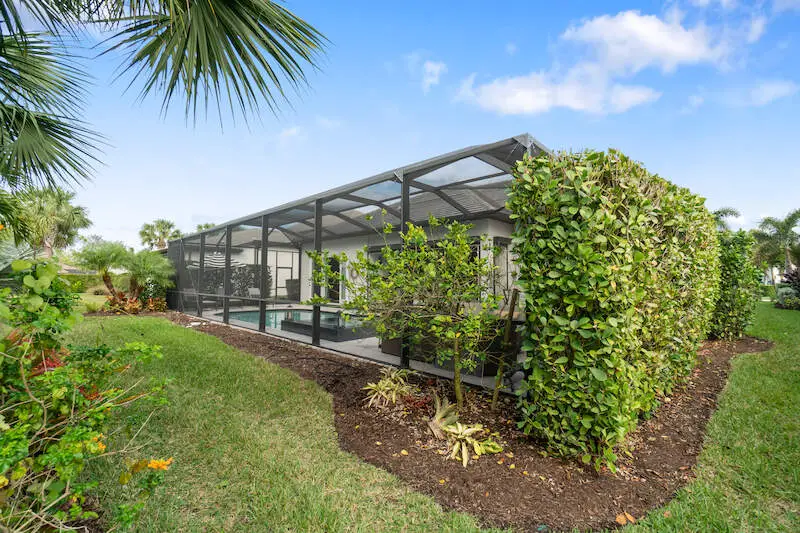 Discover a lifestyle of unparalleled luxury and leisure in the prestigious Greyhawk community. The most desired and meticulously enhanced Pinnacle model, offering 3 bedrooms + den and a 3-car garage, redefines elegance with its flawless design and sophisticated charm. Designer-style furniture and decor are also available, making it effortlessly move-in ready. Enjoy the rare opportunity of IMMEDIATE GOLF membership-bypass the waitlist and immerse yourself in the world of world-class golf, a privilege rarely found in today's market. As you walk through the grand entrance, framed by vibrant bougainvillea and flowering plants, you'll feel the warmth of a space and tons of natural light. The living room, with its coffered ceilings lined in real wood wallpaper, sets the tone for a home that's equal parts stylish and inviting. Sunlight streams through added French doors in the kitchen and master bedroom, creating a seamless connection to the outdoors. In the kitchen, the details are a chef's dream: upgraded kitchen cabinetry with above lighted glass cabinets, a custom pantry, wine fridge, electric hot water dispenser that ensures your morning coffee or evening tea is always within reach. Every space has been thoughtfully enhanced, from the illuminated mirrors and upgraded lighting to the custom-built closets that keep everything perfectly in place. This home features sleek tile flooring in all areas, and luxurious wood flooring adds warmth and elegance to the master suite. Step outside, and your private oasis unfolds. Nestled on a secluded lot, the home is surrounded by lush landscaping that transforms the space into a serene retreat. As evening falls, custom outdoor lighting casts a warm glow, creating an enchanting atmosphere perfect for relaxing or entertaining under the stars. Entire lanai deck pavers have been removed and replaced by non-slip ceramic tiles. Picture evenings by the saltwater pool and spa, renovated with elegant tile, and controlled effortlessly by a phone app. Cooking in your fully equipped outdoor kitchen, featuring a FireMagic grill, is a true delight. The upgrades continue with features designed for effortless living: hurricane impact doors and windows, lanai hurricane electric roll-down screens for added safety, a Generac natural gas-fed generator, the air-conditioned and insulated garage, complete with electric storage racks and pull-down attic access, that is as functional as it is impressive. And the list goes on! This is your opportunity to not just own a home but to embrace an extraordinary lifestyle. Schedule your private showing today, and let your story begin here.