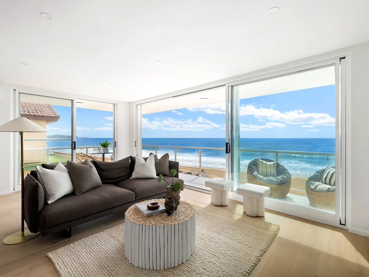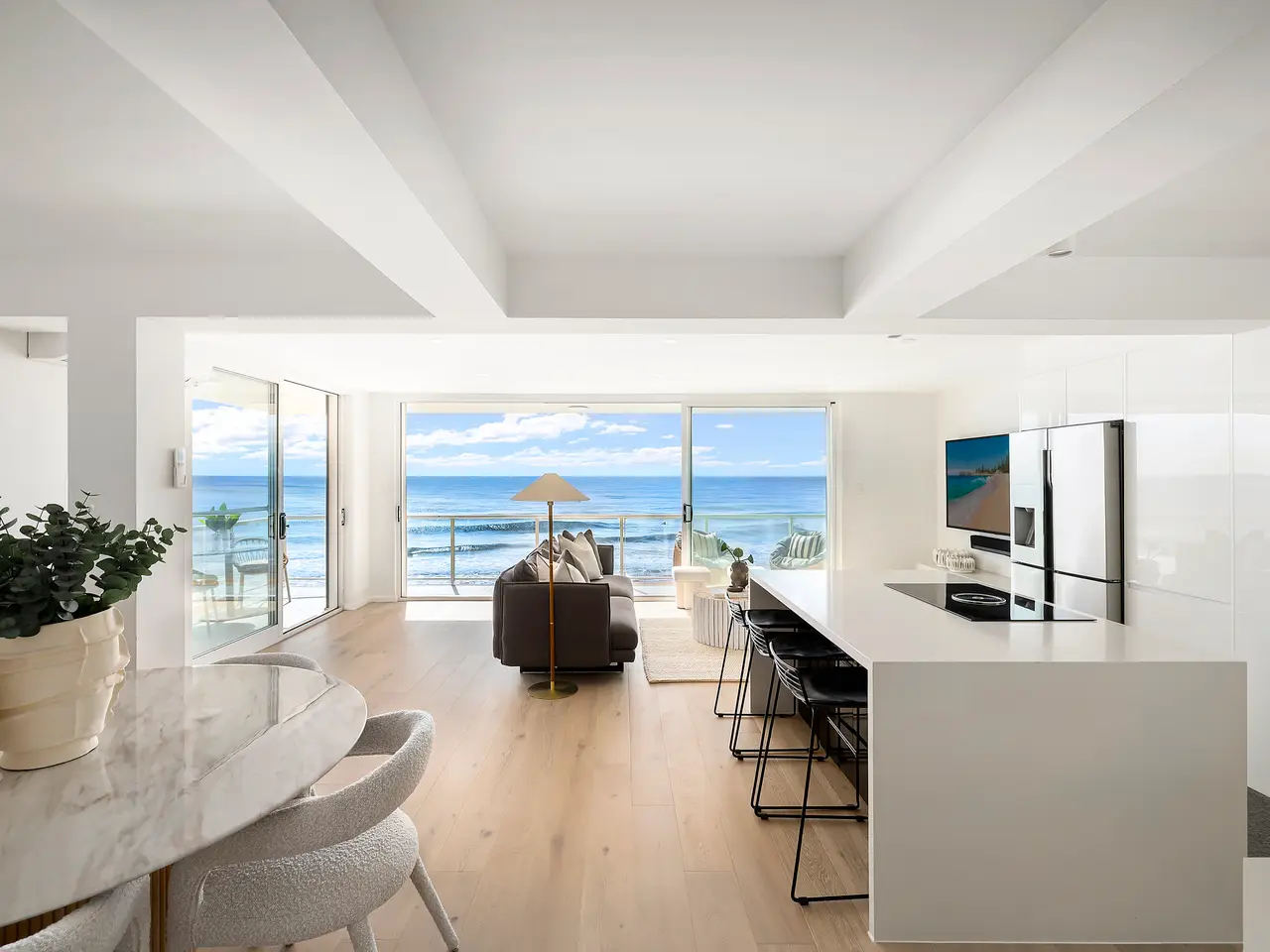 Point-blank ocean views take centre stage to the stylish interiors of this absolute beachfront security apartment holding the prized northeast corner position of a small block of only 4. The creatively redesigned apartment is bathed in sunshine with windows on three sides and a wide wrap-around terrace offering a perfect spot for entertaining against the breathtaking ocean backdrop or simply soaking up the ocean breeze and salty sea vibes. An oversized three-bedroom layout offers indoor/outdoor living space, enhanced by quality designer finishes, plus a single lock-up garage, under-building car space, and separate storage cage. Step out directly onto the beach action or stroll to trendy seaside cafes, dining, ocean pool and express B-line buses making day-to-day living a dream. - Unobstructed ocean and coast views from headland to headland - Bathed in sunshine with a north-east aspect, soothing sea breezes - 'Yulunga' a unique secure beachfront block of 4, solid double brick - Oversized layout, streamlined interiors, timber floors - Free-flowing living and dining area offers seamless connection outdoors - Designer stone crafted island kitchen, Bosch cooktop, integrated dishwasher - Wrap-around balcony, ideal to relax and unwind to the ever-changing backdrop - Three double bedrooms with built-in robes, fold-down wall bed for flexibility - Sleek bathroom with deep soaking bath and heated towel rails - Functional internal laundry with cabinetry and w/c, air conditioning - Single lock up garage, underbuilding car space, and separate storeroom