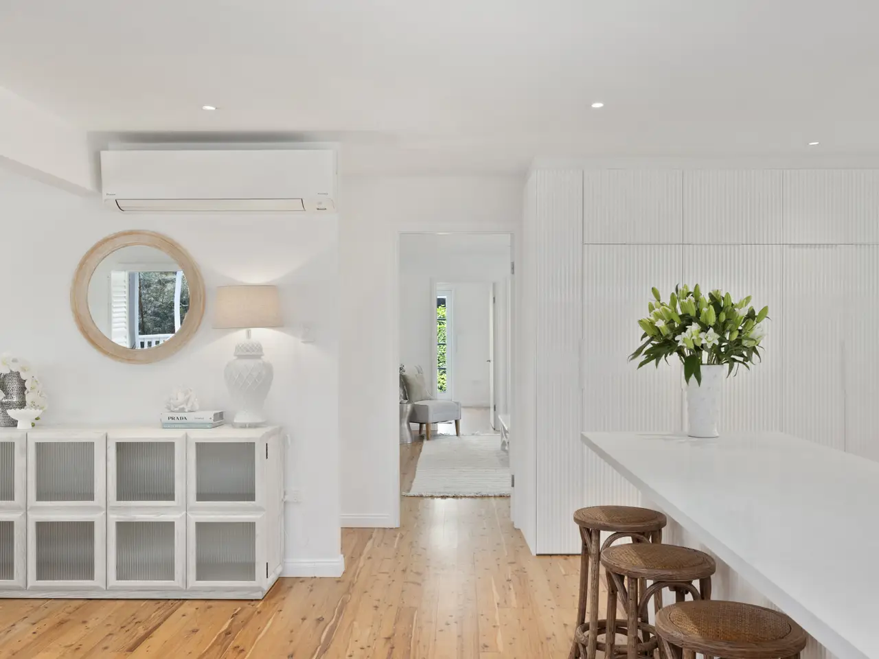 It doesn't get much better than this! Where the lake meets the beach, this exquisite five-bedroom beach home promises the ultimate coastal lifestyle. Perfect for those seeking a permanent holiday atmosphere, the waterfront home serves as both a spacious family haven or a serene retreat for downsizers. Awaken to the soothing sounds of the lake lapping in your own backyard, then take a stroll 250m east to surf the waves at Narrabeen Beach. Enjoy a jog or bike around the lake's scenic trails or launch your kayak right from your doorstep. Explore the nearby island, village shops, supermarket, trendy seaside cafes, restaurants, gyms, golf courses, and cinemas. Sought-after schools and the B-Line Bus are all just moments away. This stunning waterfront property offers more than a home, it offers the dream lifestyle for all ages. Rarely does an opportunity like this arise in Narrabeen's golden triangle, with the lake one side and the ocean on the other. Step inside this gorgeous coastal home and be wowed; - North-facing five-bedroom home with a prime lakefront setting - Quiet cul-de-sac location just 250 metres to the beach - Exquisitely finished home with a relaxed contemporary coastal theme - A year-round holiday vibe, perfect for a family or downsizers - Seamless indoor-outdoor flow extends to a wraparound verandah - Generous covered alfresco entertaining space overlooking the tranquil lake - Bathed in natural light, raked ceilings amplify the space - Charming window panes and plantation shutters - Timber floors throughout, accented with a striking sandstone Escea gas fireplace - Gourmet kitchen featuring a sleek stone bench-top and integrated appliances - Spacious bedrooms with built-in robes - Year-round comfort with energy-efficient reverse cycle Daikon air conditioning - Oversized master suite with large ensuite, walk-in robe, lake views from elevated balcony - Spacious bathroom with dual vanity and luxurious freestanding bath for ultimate relaxation - Versatile second living room that can serve as separate accommodation, with wall-to-wall storage - Home office, opening to the rear gardens offering a private separate entrance - Intercom, alarm system, surround sound, large walk-in linen cupboard, storage in every room - Beautifully landscaped tropical gardens with established palms, lush lawns, bonus bore water - Double automatic lock-up garage with internal access, additional tandem parking for your boat, caravan or motorhome