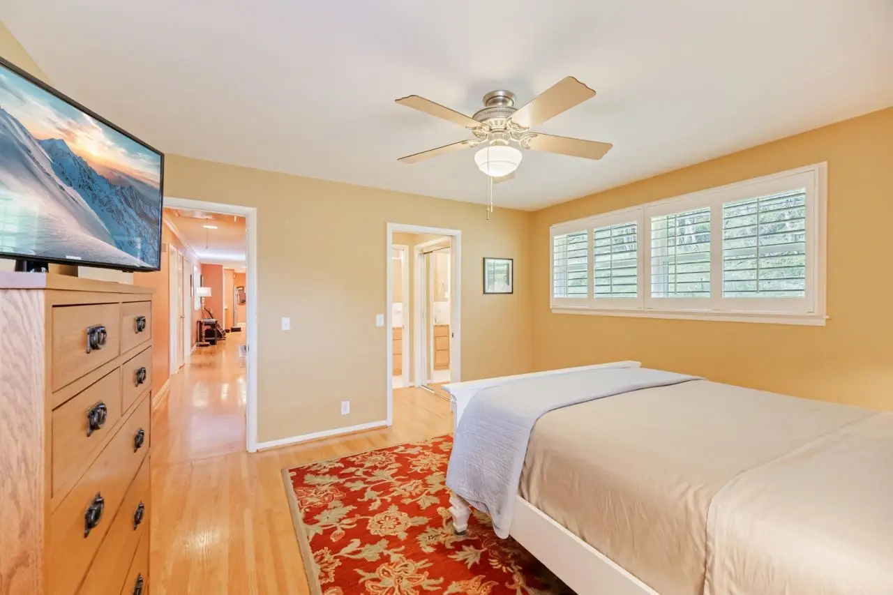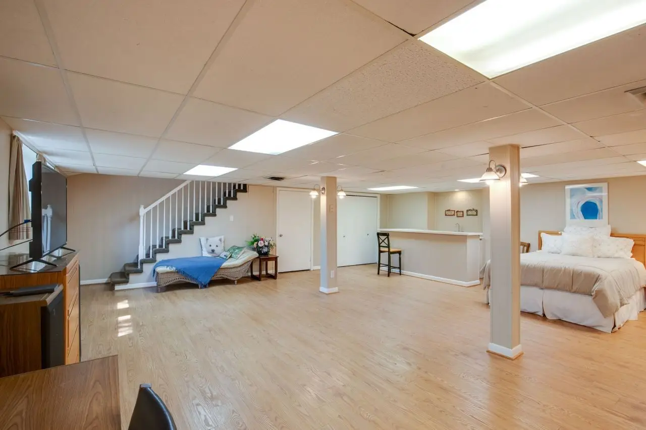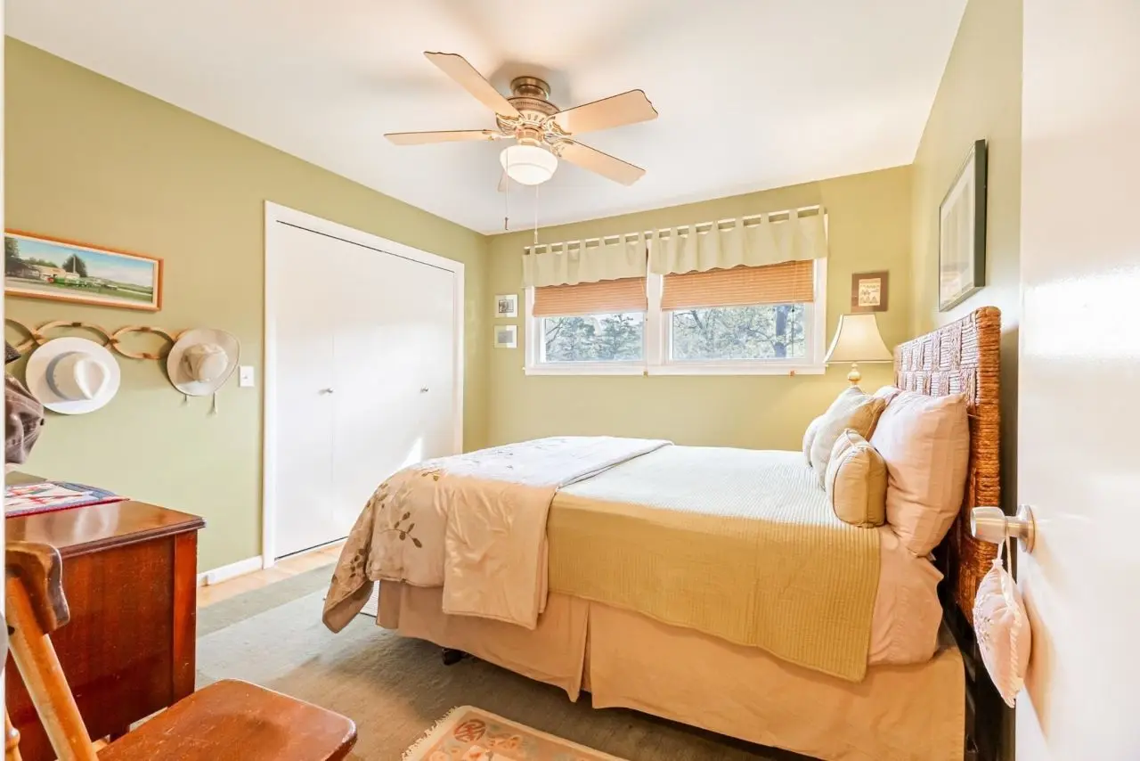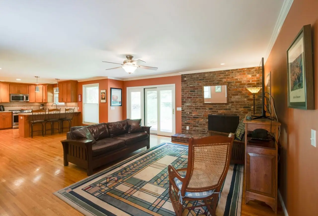 This beautifully updated ranch home sits on a 1.35 acre lovingly landscape lot. Newer double-pane insulated windows, several plantation shutters and solid wood front door with windows that offer a welcoming, light entrance. The main level has 1.5 red oak hardwood floors, cozy wood-burning brick fireplace and triple glass doors to the backyard patio. The renovated kitchen features solid maple cabinets, granite counters, tile backsplash, gas stove with electric oven and a breakfast bar. For added convenience, washer / dryer hookups are tucked away in a closet in the kitchen and basement. The bathrooms are nicely updated. A full finished basement offers extra living space with laminated wood flooring, a bar complete with a sink, fridge, and tumbled marble tile, as well as several storage closets and a full bathroom. Other upgrades include a tankless gas water heater, a sump pump, and a two-car garage with door openers and a dedicated Level 1 EV charger. The backyard is fenced and offers privacy and natural beauty. Seller does not want to move until the end of December.