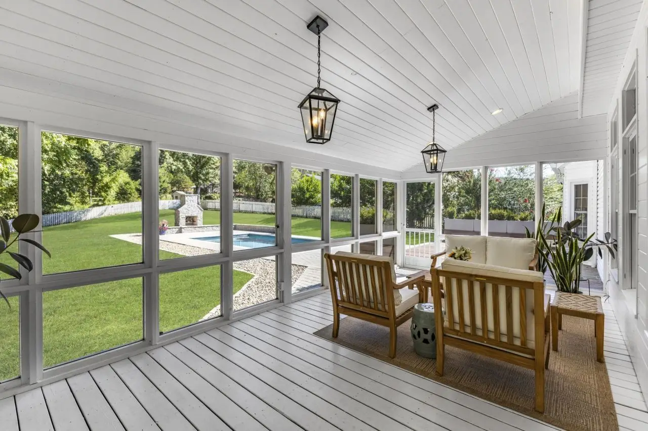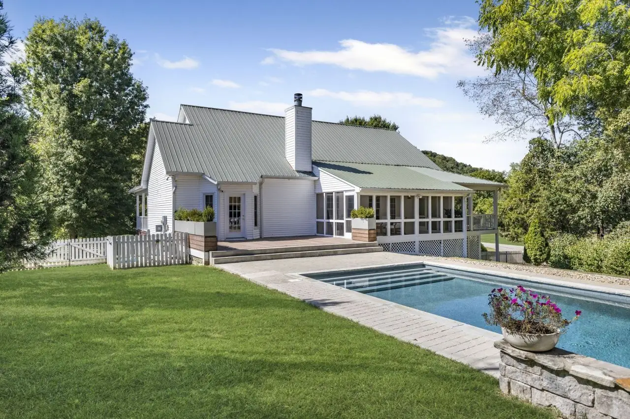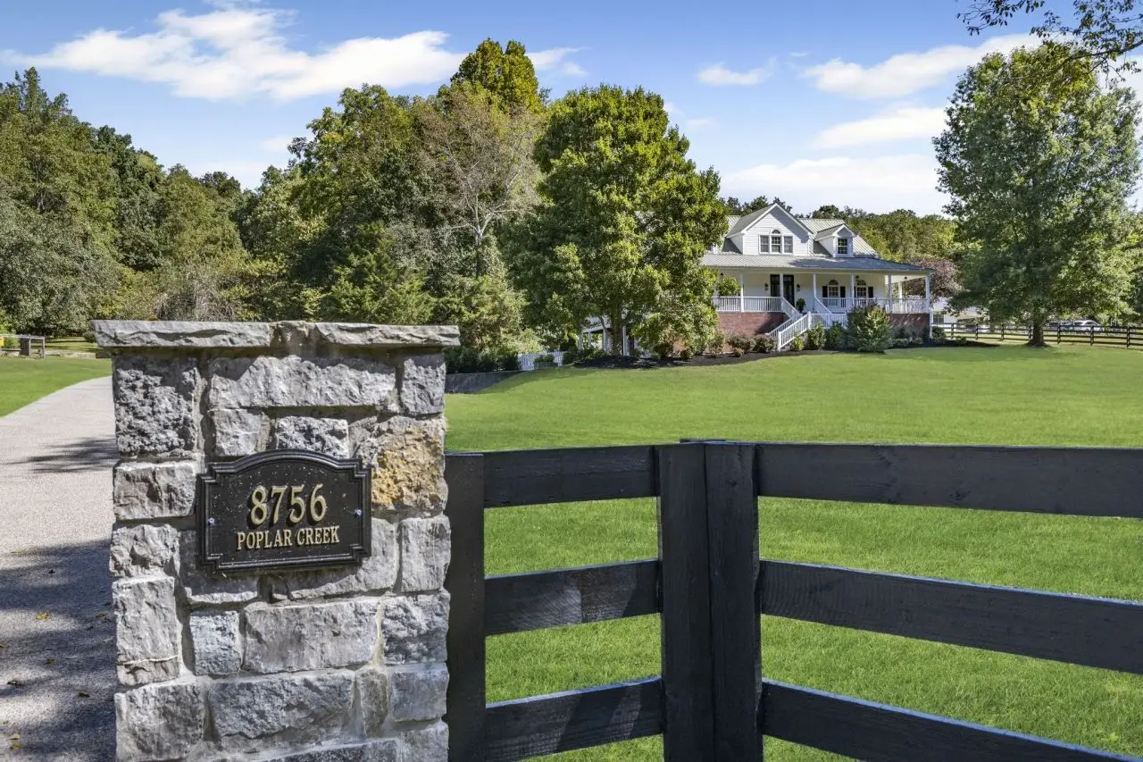 Welcome to 8756 Poplar Creek Road â?? a serene retreat just 25 minutes from downtown Nashville and moments from Harpeth Village. Set behind stone columns and surrounded by nature, this elevated home offers sweeping views of pastures and wooded hillsides from its wrap-around porch. Inside, the foyer opens to a dining room and a soaring double-height living room with custom built-ins and a floor-to-ceiling stone gas fireplace. The kitchen features wood cabinetry, granite countertops, and newer stainless appliances including a gas range, hood vent, refrigerator, dishwasher, and updated lighting. A screened porch off the living room overlooks the fully fenced backyard and 15â?? x 30â?? Gunite saltwater pool, framed by a wood-burning stone fireplaceâ??ideal for both cozy evenings and vibrant summer gatherings. The spacious first-floor primary suite boasts an 11-ft tray ceiling, walk-in closet, two additional closets, and a large bath with jetted tub, shower, and granite double vanity. Step directly from the suite to the pool deck through a private door. Upstairs are two bedrooms with charming viewsâ??one with vaulted ceiling and walk-in closetâ??and a beautifully renovated bath featuring Carrera marble, a custom vanity, and clawfoot tub. A large attic provides bonus storage. The ground floor includes a private-entry recording studio with soundproofed Live Room, Control Room, and Machine Roomâ??all with individual AC units. This level could also serve as a home theater, gym, office, or guest suite, complete with a full bath and storage. Outside, enjoy a fenced raised-bed garden with chicken coop, compost system, trellises, and stone/gravel paths. Adjacent lawn offers room for expansionâ??guest cottage, sunflower field, or more. Recent updates: New HVAC & water heater (2025), whole-house water filtration + RO (2024), and updated lighting throughout.