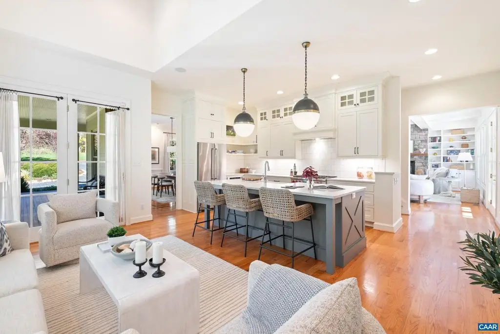 ** Open House - Sat 11/8 & Sun 11/9, 1C/B?B=4 PM ** Absolutely gorgeous! Beautifully renovated Stoney Creek farmhouse with a first-floor primary suite on a private, park-like 1.3-acre lot with stunning mountain and golf course views. Designed for seamless indoor/outdoor living, the home opens to a wide wraparound porch perfect for relaxing or dining al fresco. Inside, enjoy gleaming hardwood floors, 10-ft ceilings, and custom built-ins. Main level features a serene primary suite with bay window & luxurious bathroom, a chef's kitchen with 6-burner Wolf range, quartz counters, and 9-ft island, a keeping room, "cookbook nook," dining room, home office, mudroom, laundry, powder room, and a large family room with stone fireplace, coffered ceiling, and wall of windows overlooking the mountains. French doors open to a screened porch and adjoining deck with propane hookup for entertaining. Upstairs offers three bedrooms (one with spectacular views), two baths, pajama lounge, and ample storage. Wintergreen's Stoney Creek community offers golf, skiing, pools, lake access, trout fishing, hiking, a spa, and moreC/B?B=a true four-season lifestyle! Whole-house Generac generator included for peace of mind.