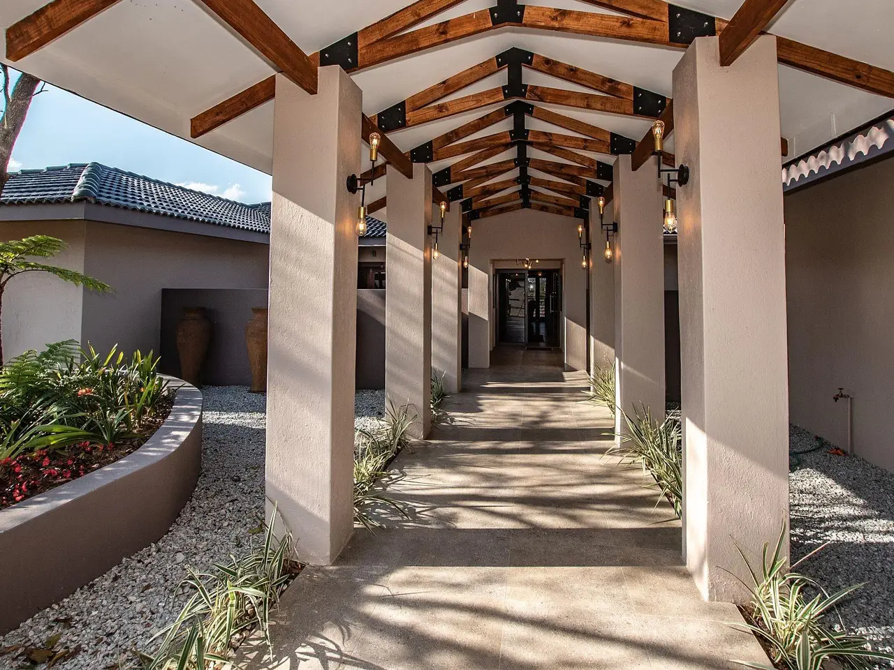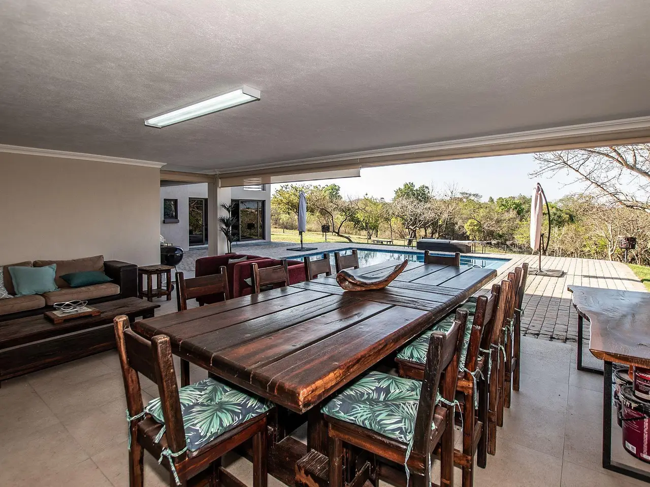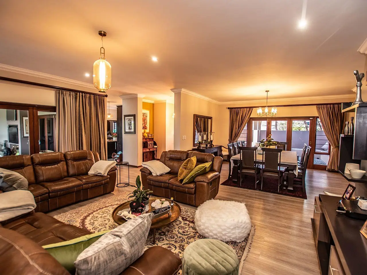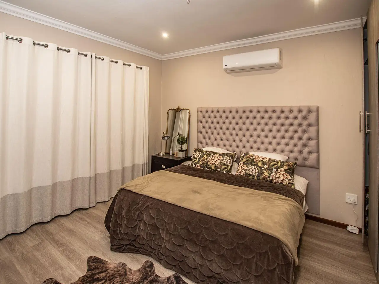 Set in ever popular Shandon Estate on a 1, 19 ha stand, this immaculate double storey executive home boasts a feature entrance which flows into generous open plan TV room and dining room with outside boma area which fuse effortlessly with a granite clad kitchen with gas stove, separate scullery and pantry and out onto a large covered patio with views. The upper level further hosts 4 spacious bedrooms with ample cupboards spotless modern bathrooms ( main en suite with walk in dressing room ) and linen room. The lower level offers a full guest suite with separate pyjama lounge and spills out onto a games room, storeroom and sparkling swimming pool. Other attractions include 5 extra sized automated garages and outside laundry and the established garden is fenced to keep your pets secure. Shandon Estate is renowned for upmarket homes, top security and infrastructure and large green belts and plains with roaming game. Located on the outskirts of Nelspruit within a few minutes' drive of Mbombela Golf Club, De Hallen and Valley Hyper developments and the Nelspruit Cbd.