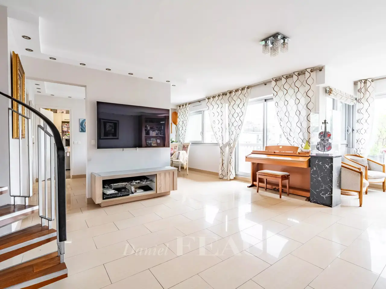 Pont de Neuilly neighbourhood. This duplex apartment benefiting from a 29 sqm terrace and several balconies is on the 5th and 6th floors of a mid 20th century co-ownership with a caretaker. 133.32 sqm of peaceful living space includes a spacious living/reception room directly accessing the terrace, a dining room, an adjacent kitchen, a utility room and a wc. The upper floor comprises a master suite with a dressing room, three further bedrooms opening onto a continuous balcony, a bathroom, a shower room and a wc. With a cellar and two parking spaces. In a convenient location near the shops and transport networks.