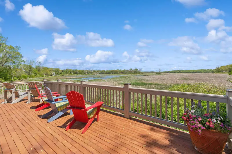 ''Harbor House'' a custom built home with sweeping views of the 1,000 acre Galien River Nature Preserve & the New Buffalo marina. Enjoy nature from the multiple mahogany decks & screened porch or watch sunsets over the harbor in front of the outdoor fireplace. This home offers breathtaking views from every room. Vaulted Great Room with stone fireplace, gourmet kitchen with granite counters & S/S appliances. Primary bedroom suite has Jacuzzi tub, walk-in shower & large walk-in closet. 3 additional bedrooms with ensuite baths. Mahogany floors throughout the main level. New tankless hot water heater, surround sound, security system and 2 car heated garage. Steps to your own private 45' boat slip. Just a four minute walk to the beautiful Lake Michigan beach. Great rental history with permit.