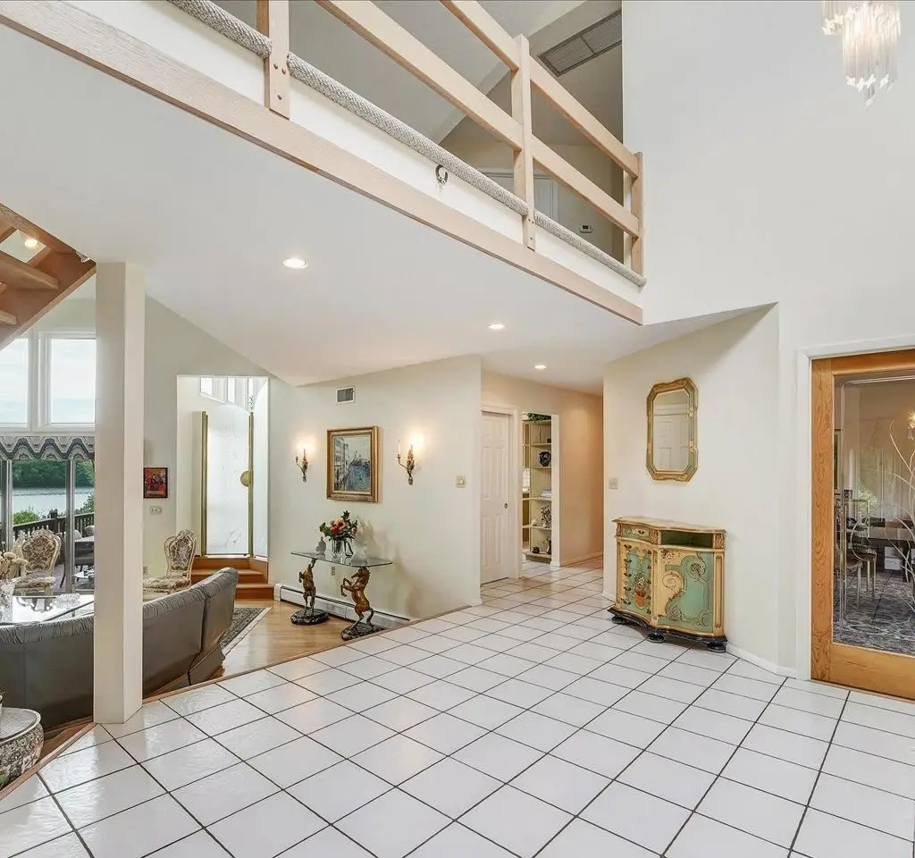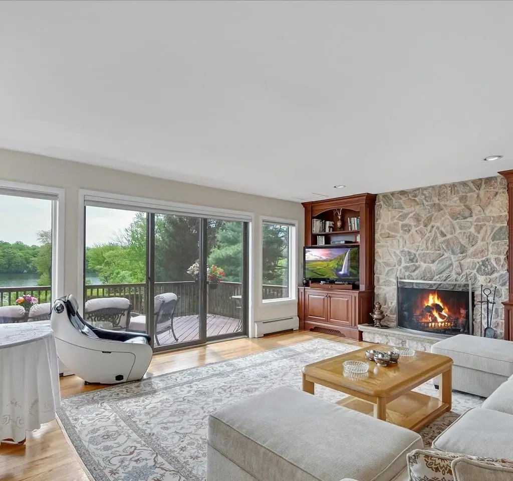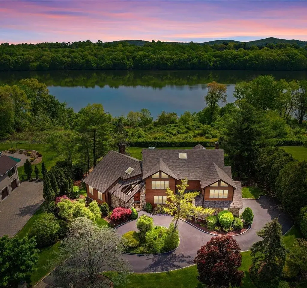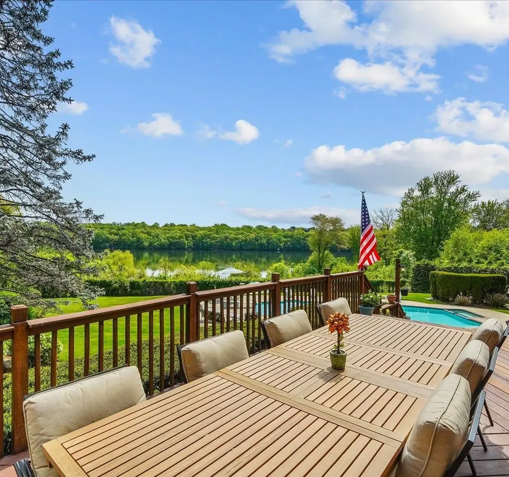 From a renowned local builder, in the exclusive private cul-de-sac of Fieldstone Court, this contemporary colonial overlooks the serene Lake Deforest. Boasting 5 bedrooms, 5 baths, an open design, spacious patio & in-ground pool, this home sits on .69 of an acre of finely landscaped grounds, with lake views throughout the home year round. Step inside to a grand atrium that flows effortlessly into dual living rooms united by a wet bar perfect for hosting. The expansive dining room, is adorned with two sets of French doors. The spacious kitchen boasts a dine-in area, high-top bar, Culligan water purification system, garbage compactor, and a versatile island equipped with an additional sink, built-in grill top, and food processor-all opening to the generous porch and poolside retreat. Cozy up at one of the two fireplaces and enjoy this vacation style home. The basement includes another estimated 1800 sqft of space with walk out access to the patio and pool. Additionally, the garage is wired for EV charging! Ideal for commuters, the breathtaking views will make you forget you're just minutes away from New York City. New City features award winning schools, fine dining experiences, shopping, outdoor activities, local parks, and easy access to major highways for an easy commute to anywhere.