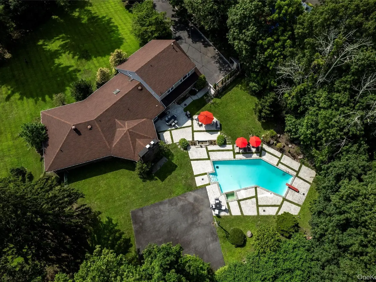 The owner is offering private financing to qualified purchasers with good credit and a normal down payment and may also consider a lease-purchase arrangement—an uncommon opportunity for buyers who might not fit conventional lending programs. Set on a gently winding country road in the heart of New City, this stately all-brick and stucco residence offers over 4,300 square feet of versatile living space on a beautifully landscaped acre. A legal two-family home, it’s ideal for multi-generational living, extended guests, or flexible use. Inside, the dramatic living room with cathedral ceilings anchors an open-concept layout filled with light and volume. The thoughtfully designed kitchen provides abundant cabinetry and workspace, while the second-floor living area functions perfectly as private guest quarters or an independent suite. Solid construction and classic design details ensure timeless appeal. Additional highlights include a full unfinished basement with expansion potential, an oversized two-car garage plus driveway parking for 10+, and a private, tree-lined yard with in-ground pool—perfect for summer relaxation and entertaining. Conveniently located just minutes from Exit 11 of the Palisades Parkway and close to the shops, dining, and parks of revitalized New City, this property is also served by the Clarkstown North School District. A compelling combination of size, substance, location, and rare financing flexibility for well-qualified buyers makes this a truly standout opportunity in Rockland County.