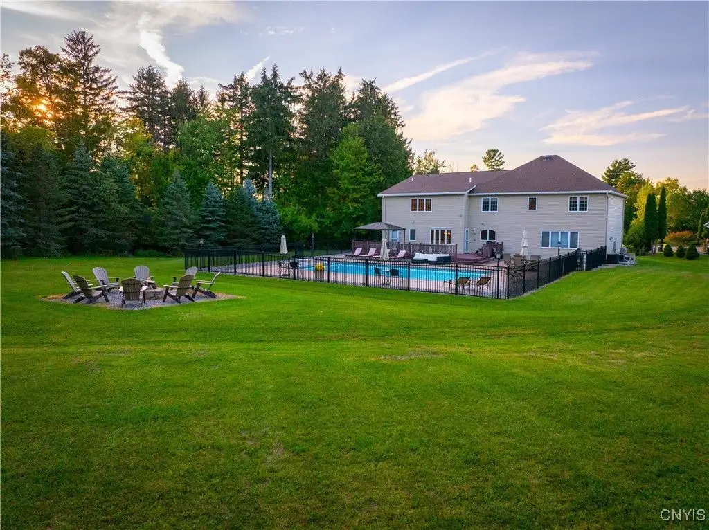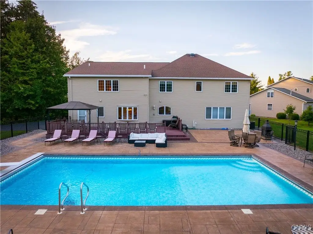 Welcome to this meticulously cared-for five-bedroom Colonial, offering two full baths and three half baths, perfectly situated on a peaceful cul-de-sac. From the moment you step inside, you'll feel the warmth and comfort of a home designed for both everyday living and elegant entertaining.The spacious layout features a large primary suite that provides the ultimate retreat, while the inviting living areas are ideal for gathering with family and friends. The family room (could be clarified as a great room) flows beautifully into the heart of the home, offering versatility for today's lifestyle.Step outside and discover your own private oasis. The expansive backyard boasts an inground heated pool, surrounded by lush landscaping and plenty of space for outdoor dining, lounging, and play. With its serene setting and exceptional privacy, this home transforms into your very own staycation paradise - perfect for relaxation or entertaining all summer long.Tucked away in one of New Hartford's most desirable neighborhoods, this home combines the charm of cul-de-sac living with the convenience of nearby amenities, schools, and recreation.24 hour notice needed for showings
