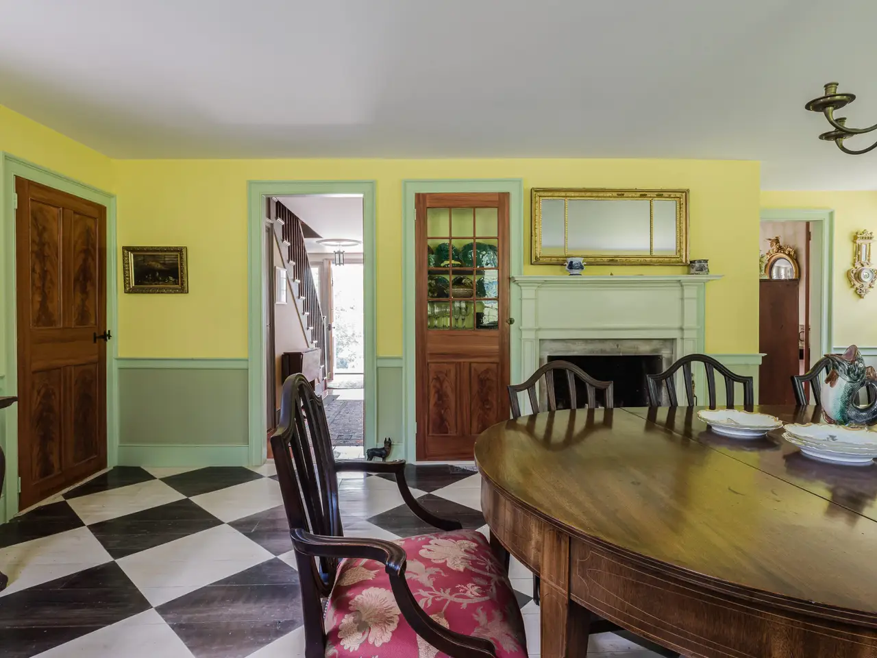 Introducing Mossford Estate, a historic country residence that comes along once in a generation. On the market for the first time in 40 years, this circa 1800 property is a superb example of Federal-style architecture. Set on 144 acres, the sprawling estate includes an antique barn, swimming pond, tennis court, five fireplaces, a stone patio, and a wealth of period details.The oldest part of the house is a classic side-hall Colonial, featuring nine-over-nine windows with wavy glass. Inside, a formal living room and dining area with built-in china displays and hand-painted floors offer space for 14 guests, while a sunny, south-facing breakfast nook adjoins the modern kitchen. The centerpiece of the main level is a soaring, double-height denlikely a former barn conversionthat evokes the feel of a Ralph Lauren-style Adirondack lodge, rustic yet refined. A cozy sitting room with a fireplace adjoins a full bath and laundry area, adding comfort and function to the home's main floor.Upstairs, the primary suite includes a fireplace and full bath, while a wide hallway with a darling reading nook leads to three large bedrooms and a third full bath. Every room reflects the owners' meticulous care in preserving and replicating 19th-century details, from antique fixtures and thoughtfully chosen wallcoverings to original faux bois painted doors.Behind the house, a brick and stone patio is bordered by mature perennial gardens, creating a peaceful spot for outdoor dining and entertaining. A gently sloping lawn leads to a fenced tennis court, and a vegetable garden and potting shed make homegrown meals a part of everyday life. Across the quiet gravel road, a 30x40 antique barn with a new standing seam metal roof sits on a stone foundation, with a private swimming pond just beyond, glimpsed through the trees. In every direction, Mossford Estate captures the essence of refined country living at its very best.